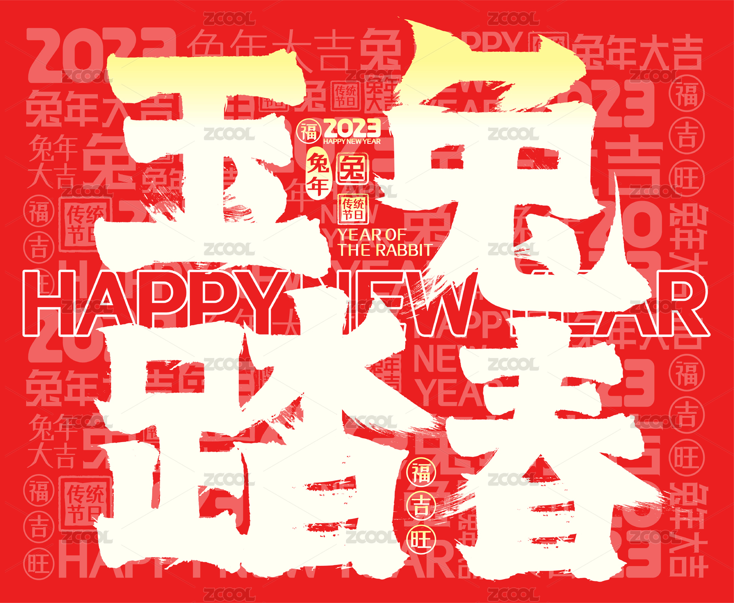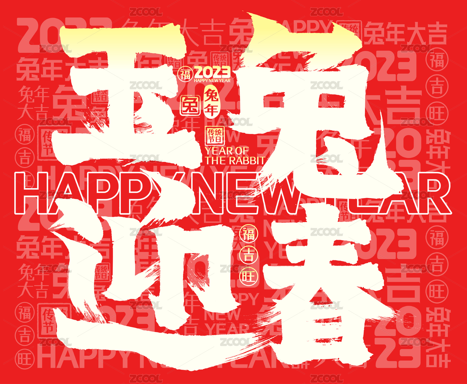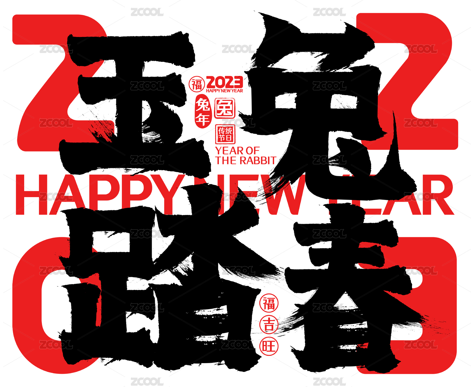 2023玉兔迎春喜庆中国红兔年春节毛笔字