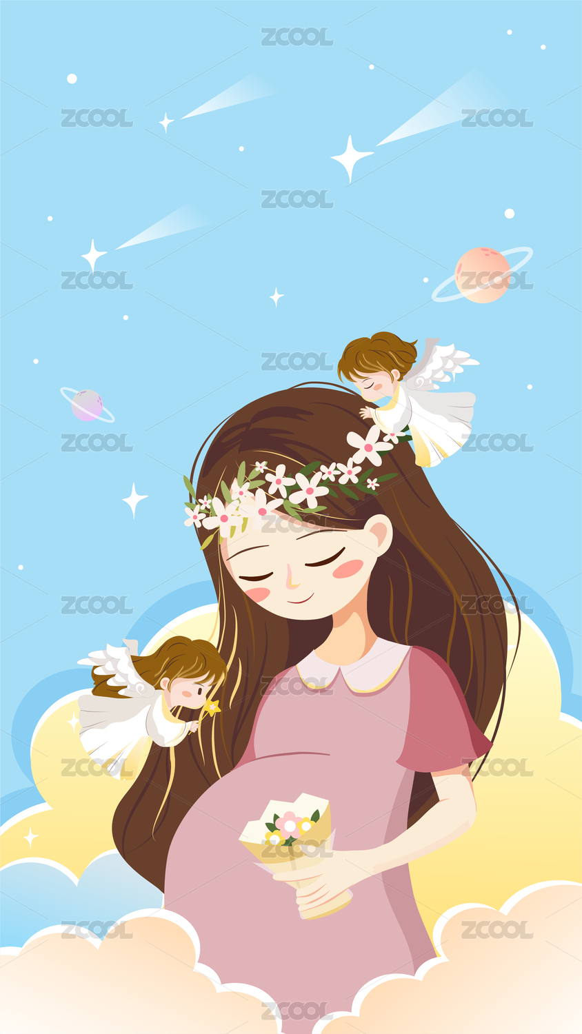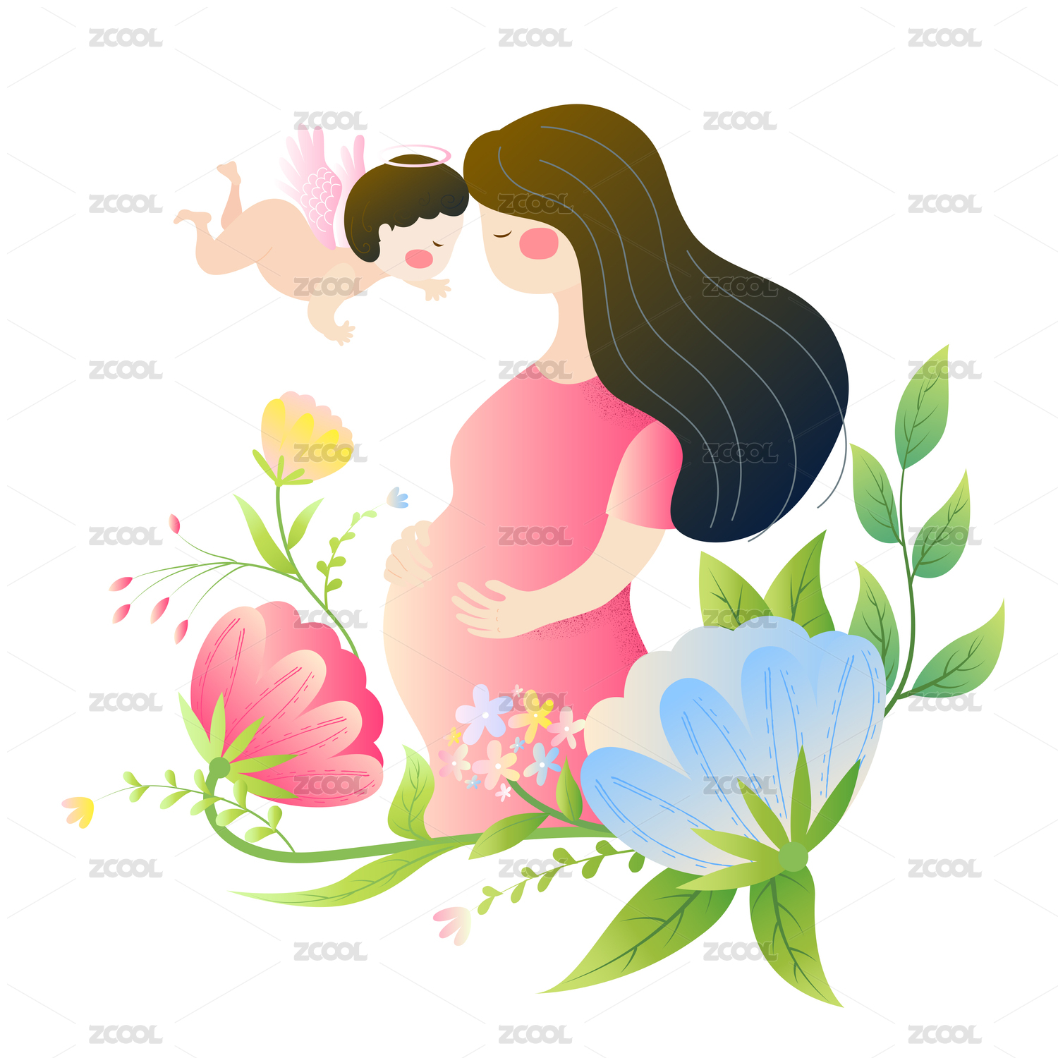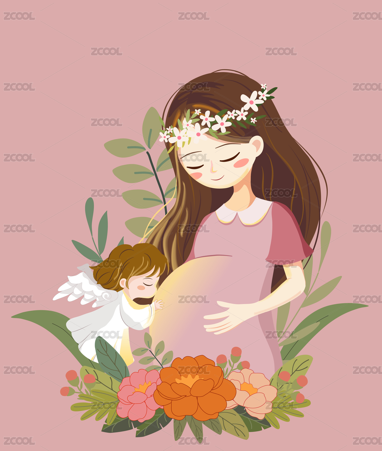 拿着花的孕妇和天使
