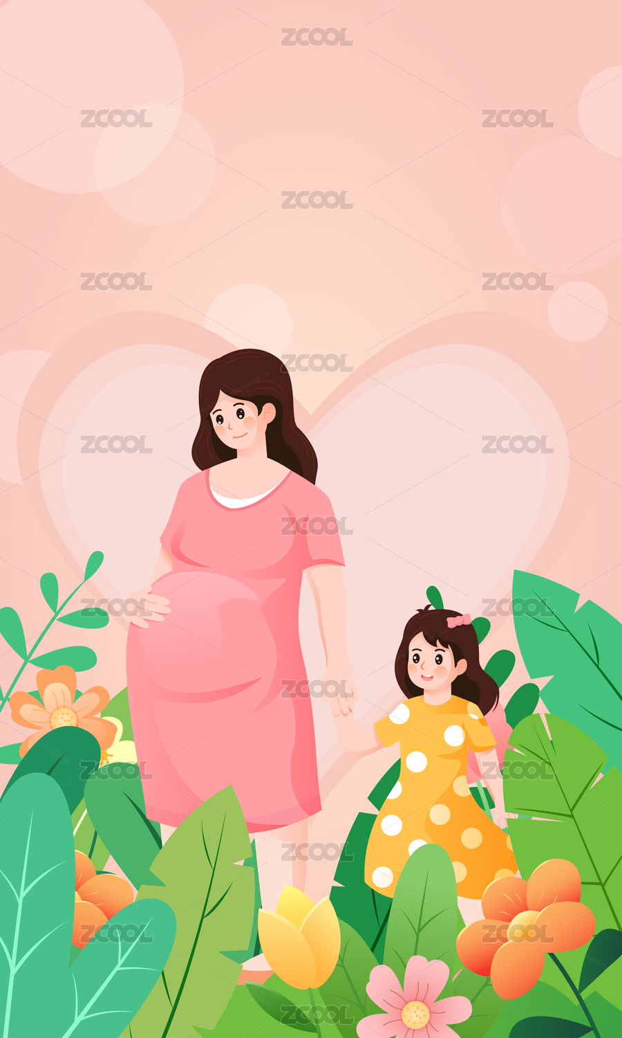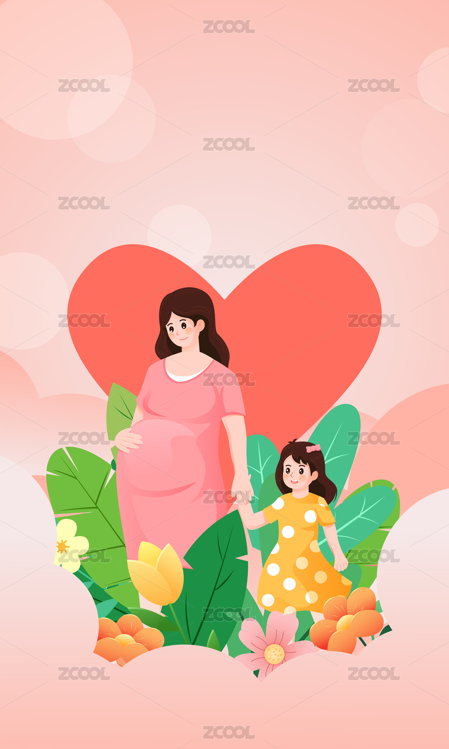 母亲节快乐孕妇妈妈儿童人物矢量插画海报