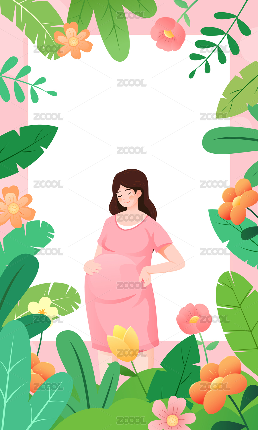 怀孕的妈妈小清新插画