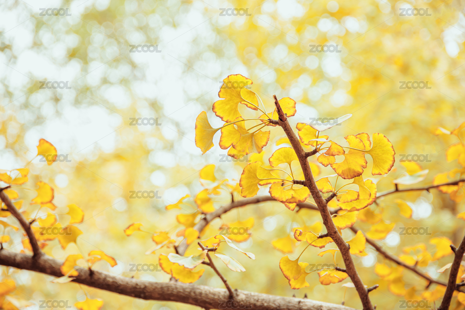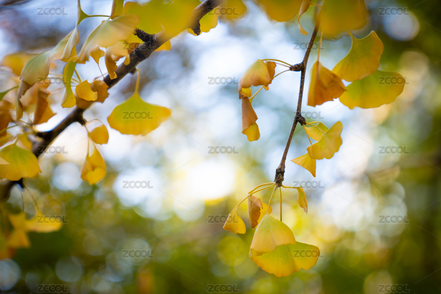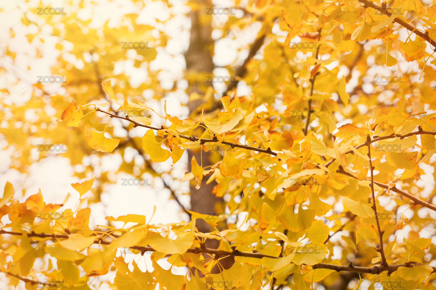 冬日枝头上一片片已经黄透金黄的银杏叶