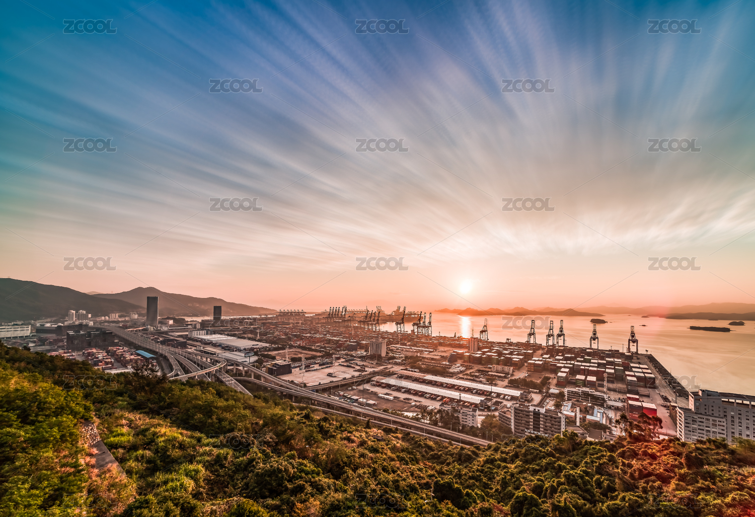 广东省深圳市盐田港日落风光