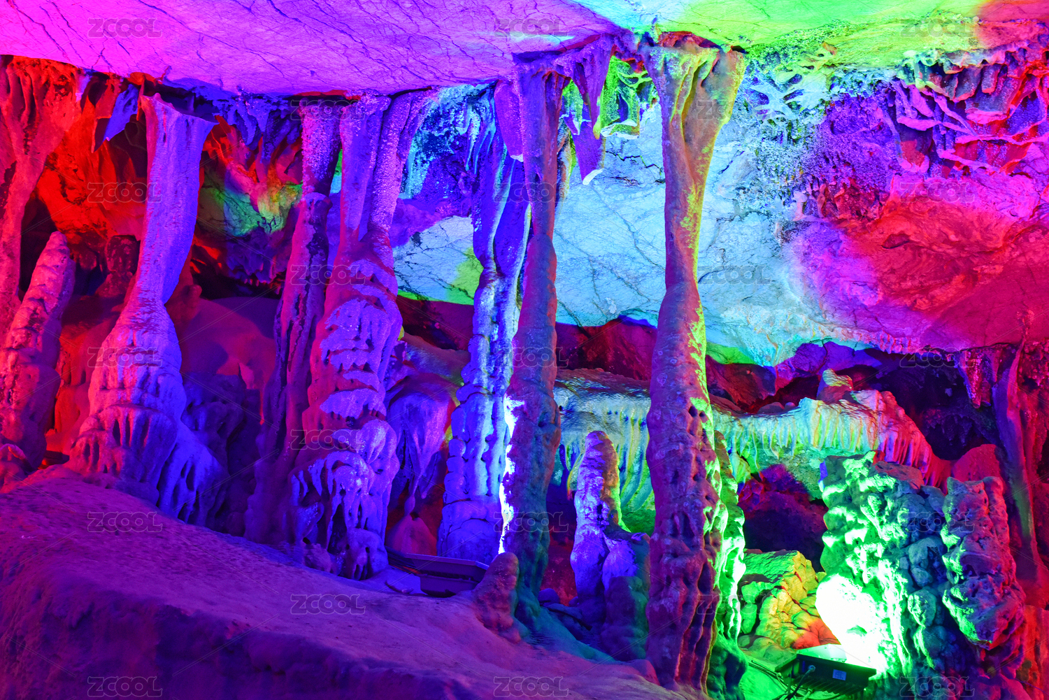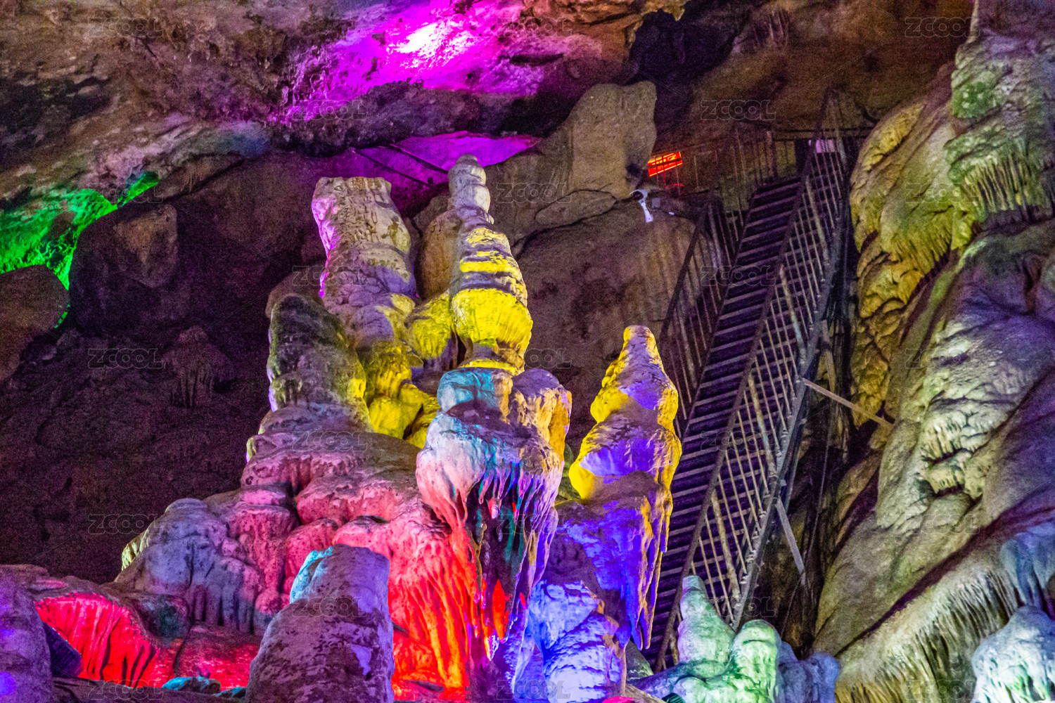 广西柳州都乐公园溶洞内多姿多彩的钟乳石