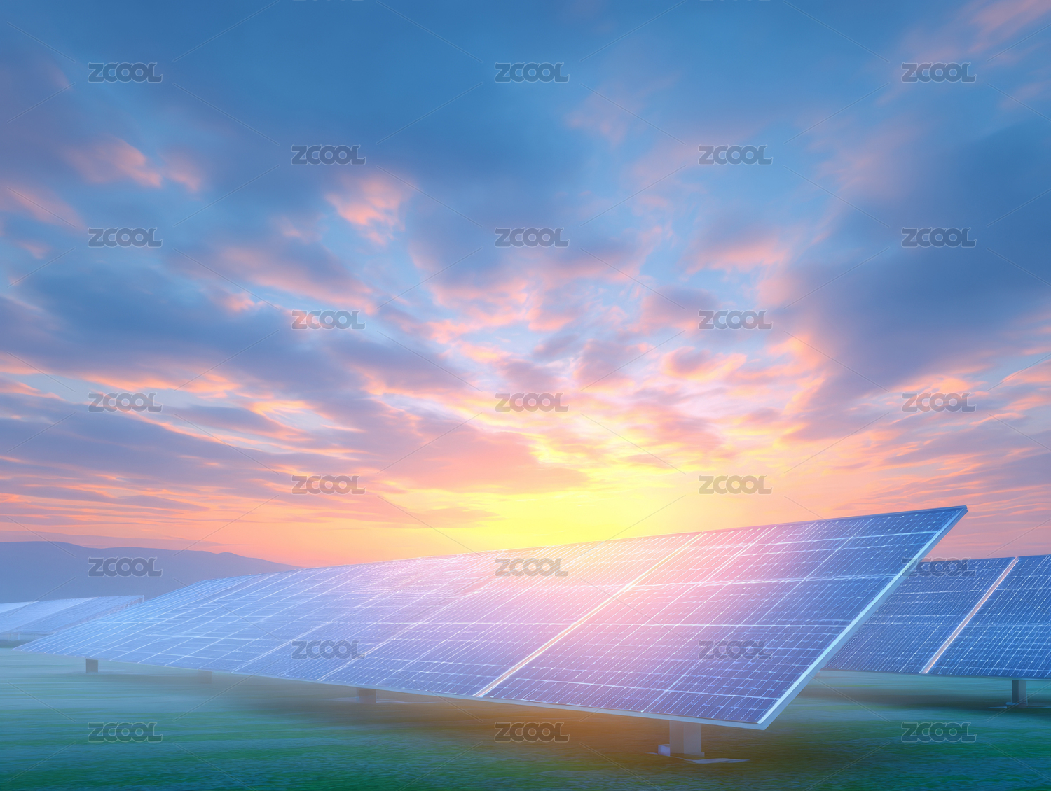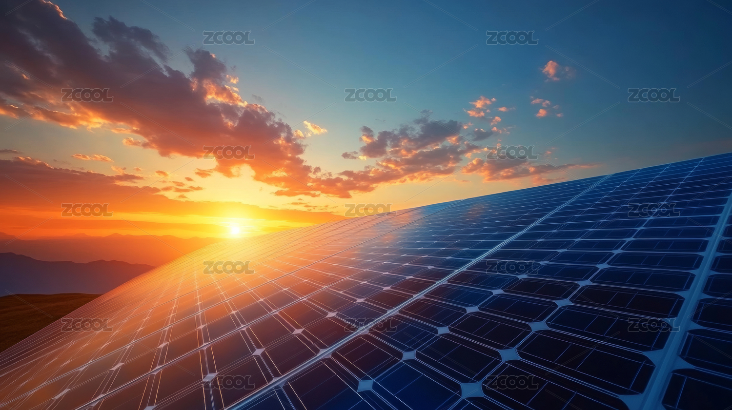太阳能板日落美景