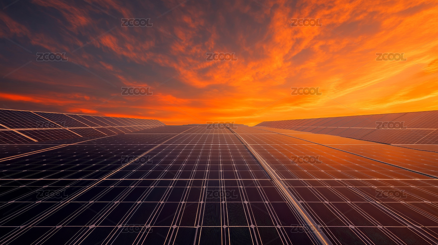 夕阳下的太阳能光伏板