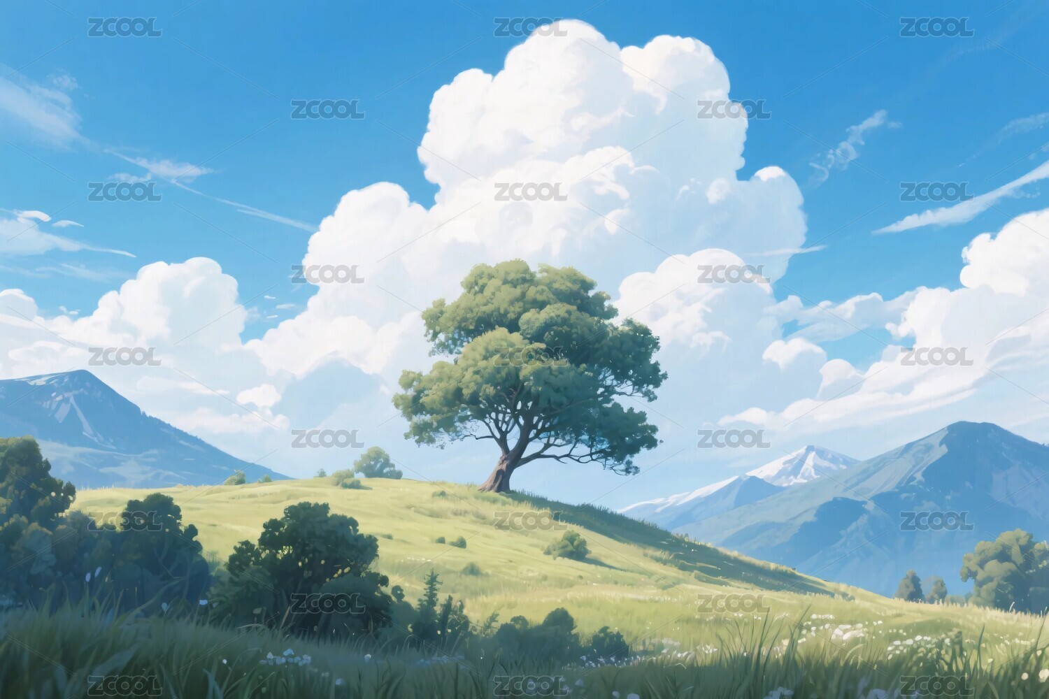 大自然,风光,风景,自然,插画,卡通,背景,景观,场景,绿色