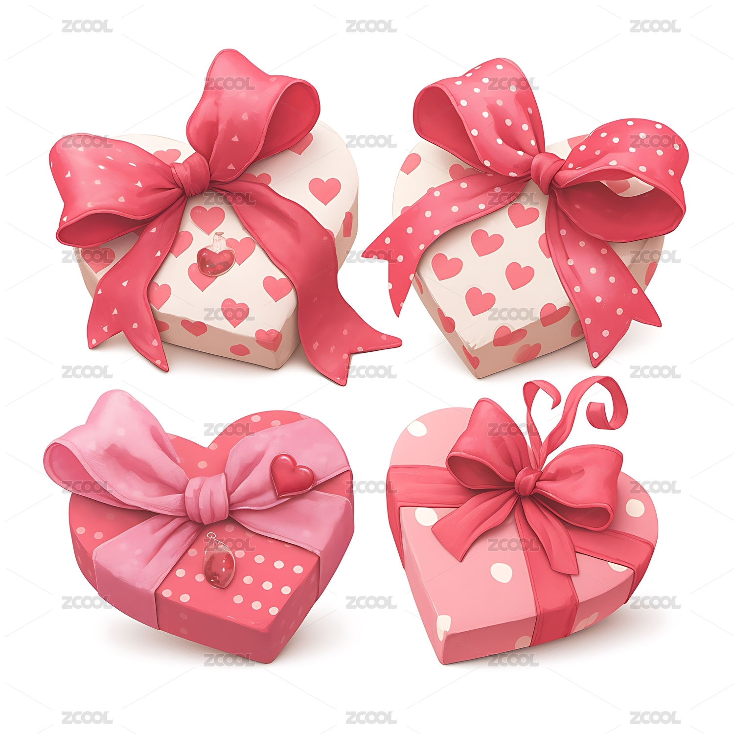 四色心形礼物盒子