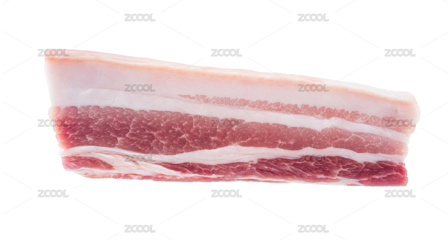 白底上的一块生猪肉五花肉