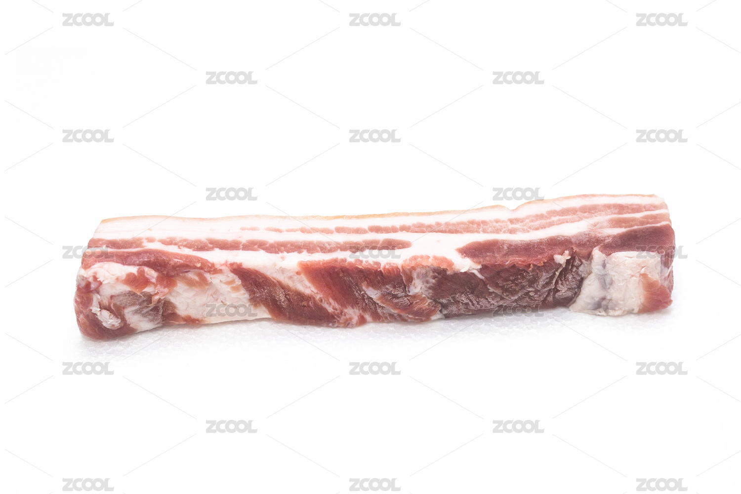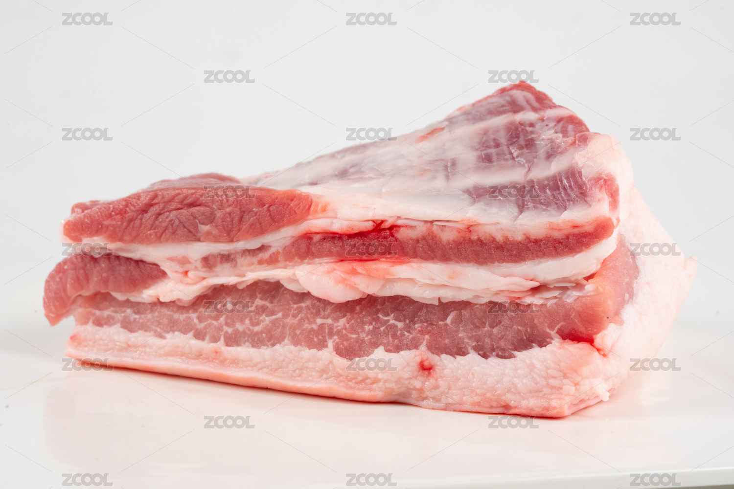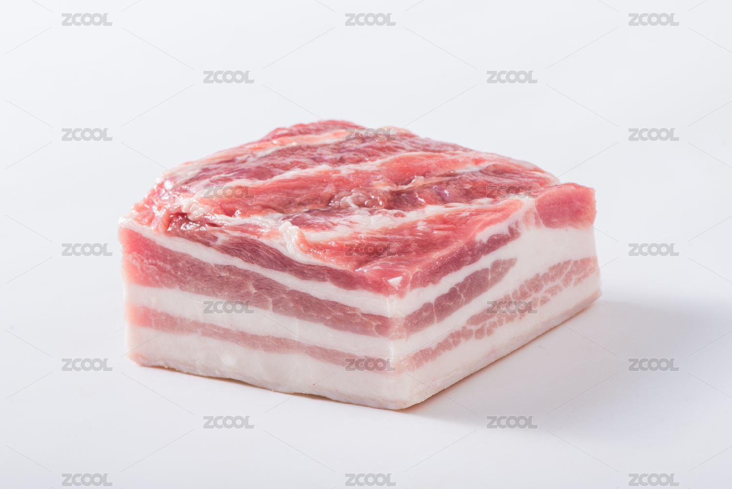 一块精选的五花肉摆放在白色背景上
