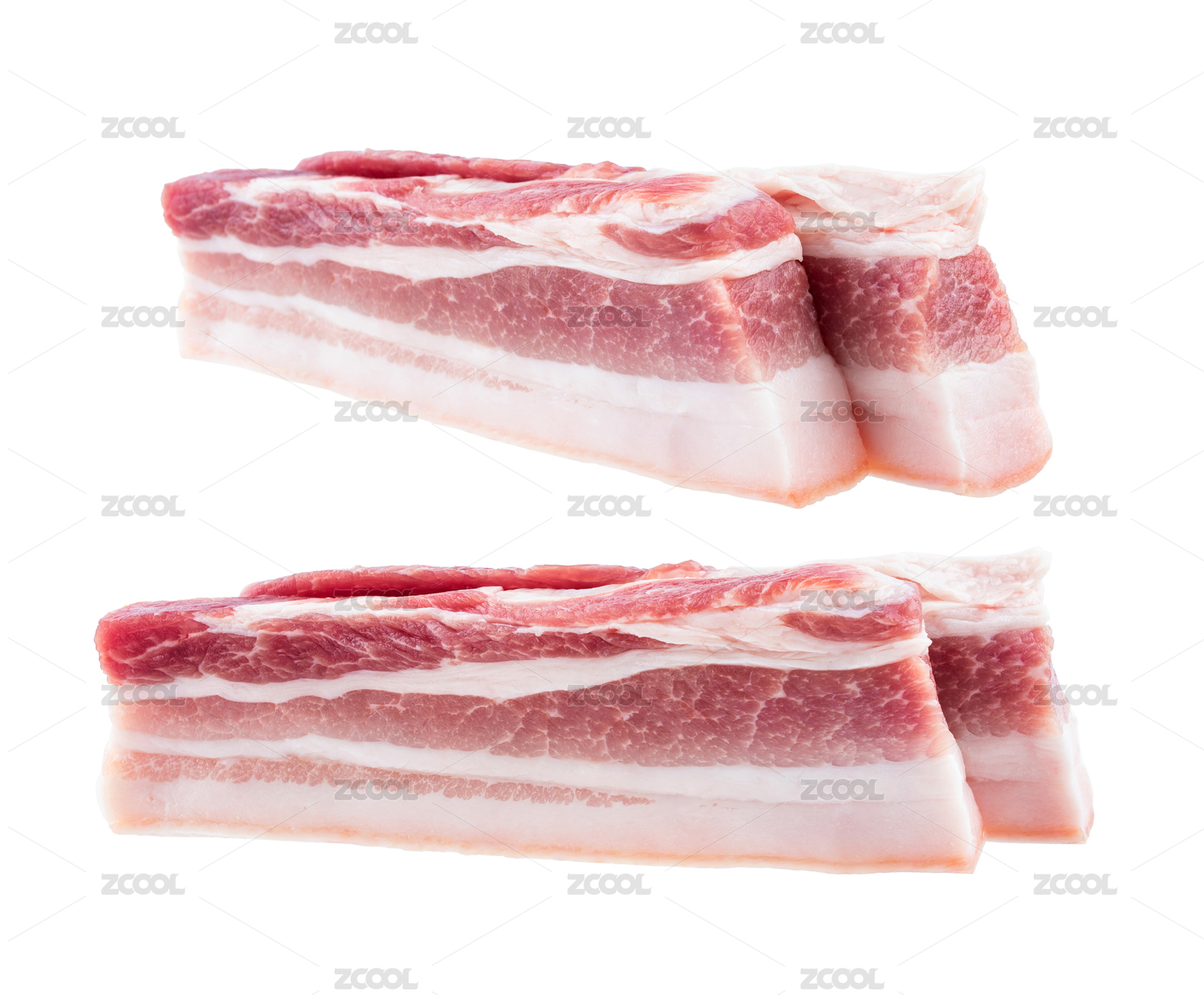 白背景上的新鲜猪肉五花肉