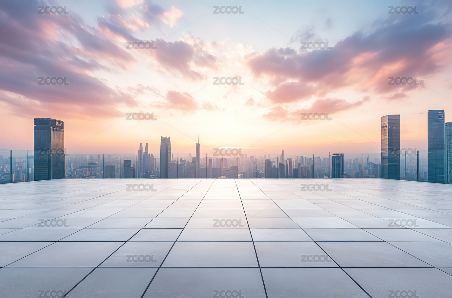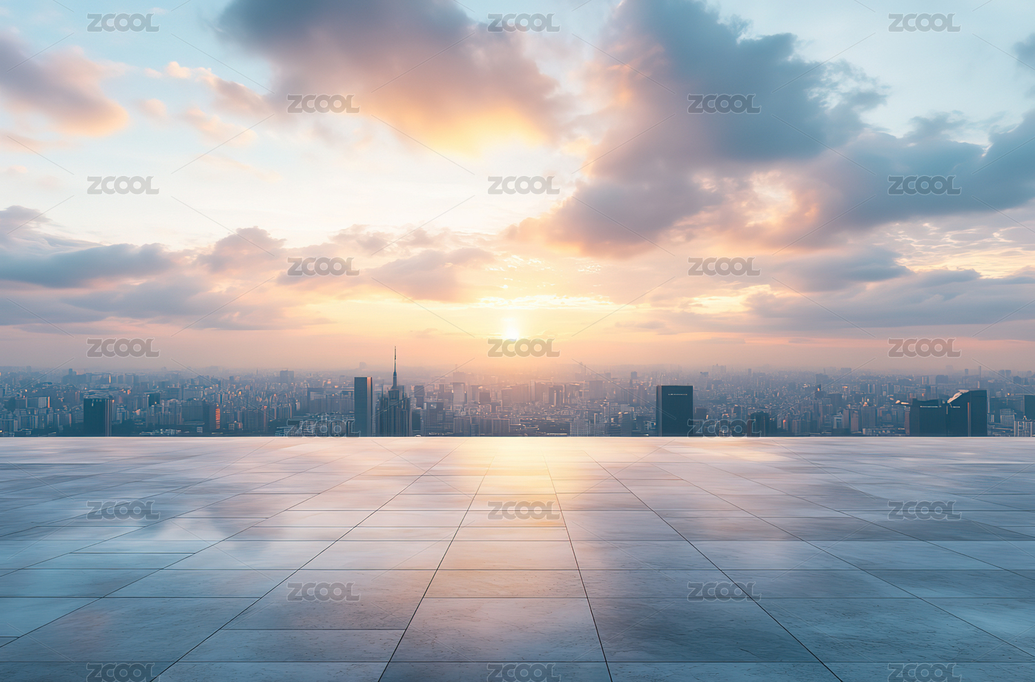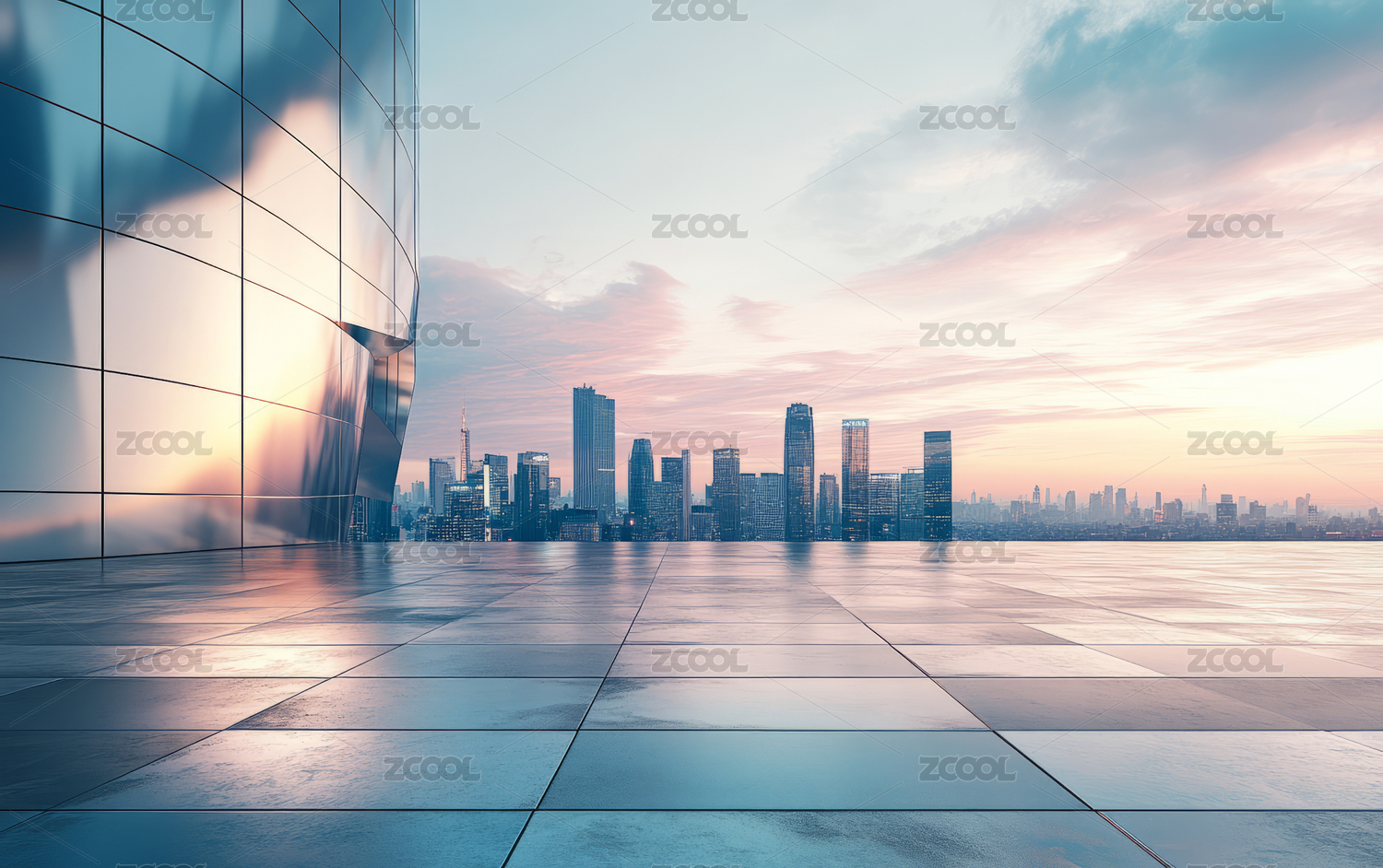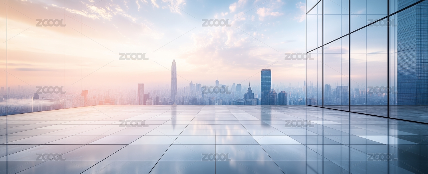 城市天际线与空旷广场地面背景