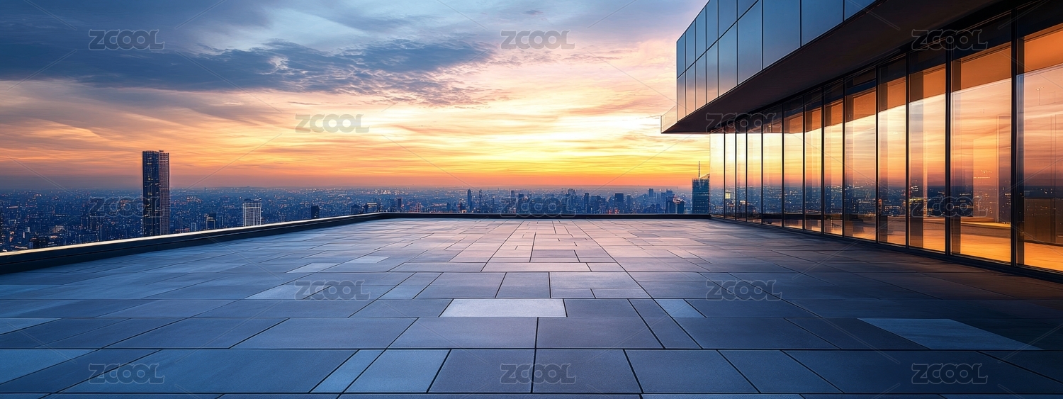 城市天台日落景观