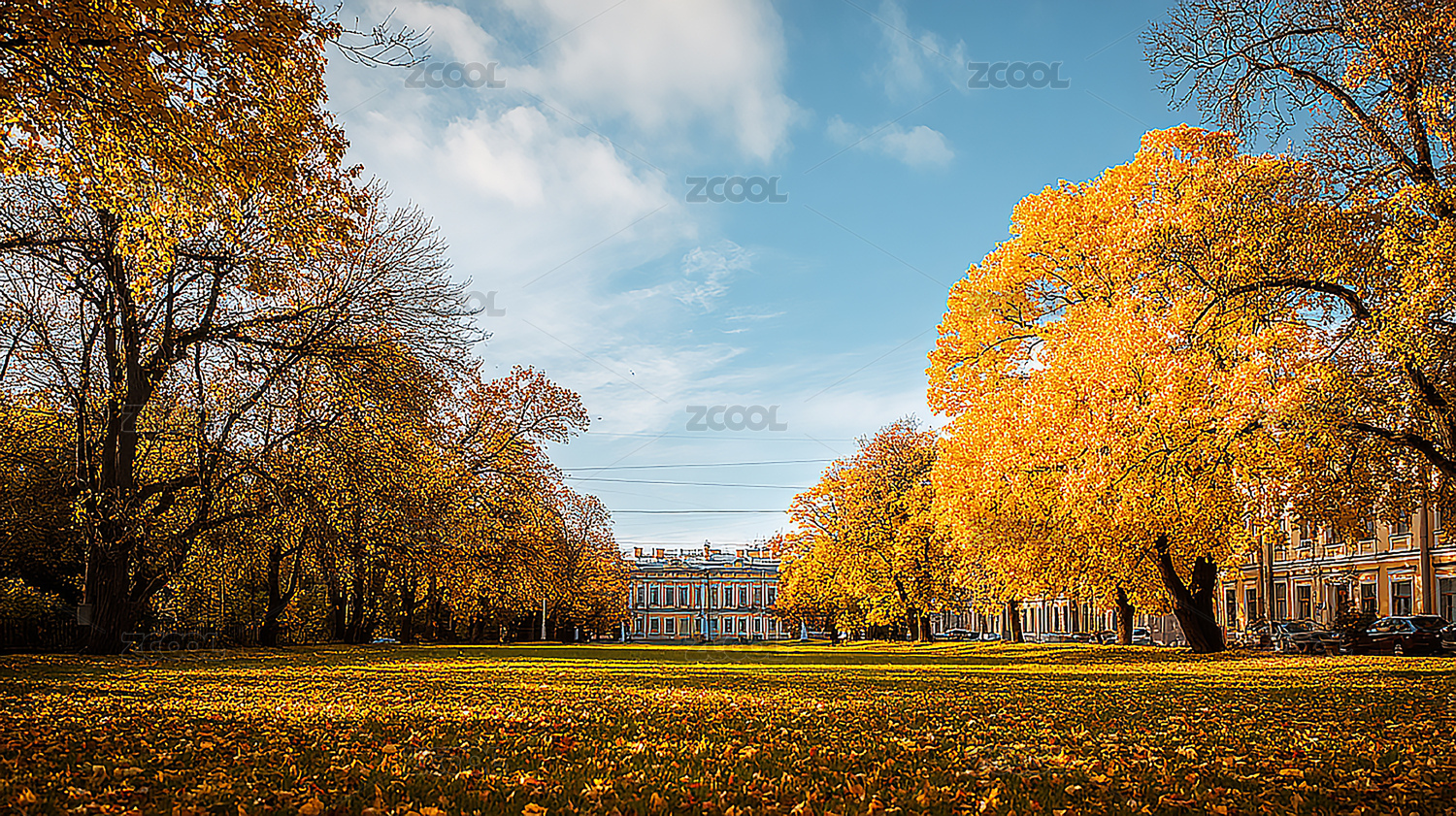 俄罗斯莫斯科秋季街头雕塑和花园景观