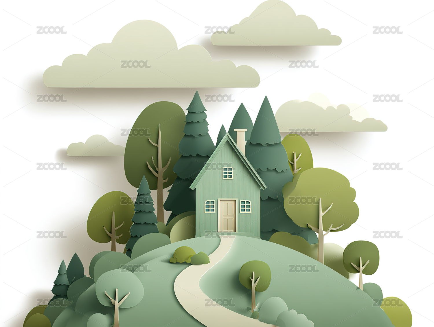 3D,立体,房子,别墅,房屋,建筑,养老,房产,概念,素材