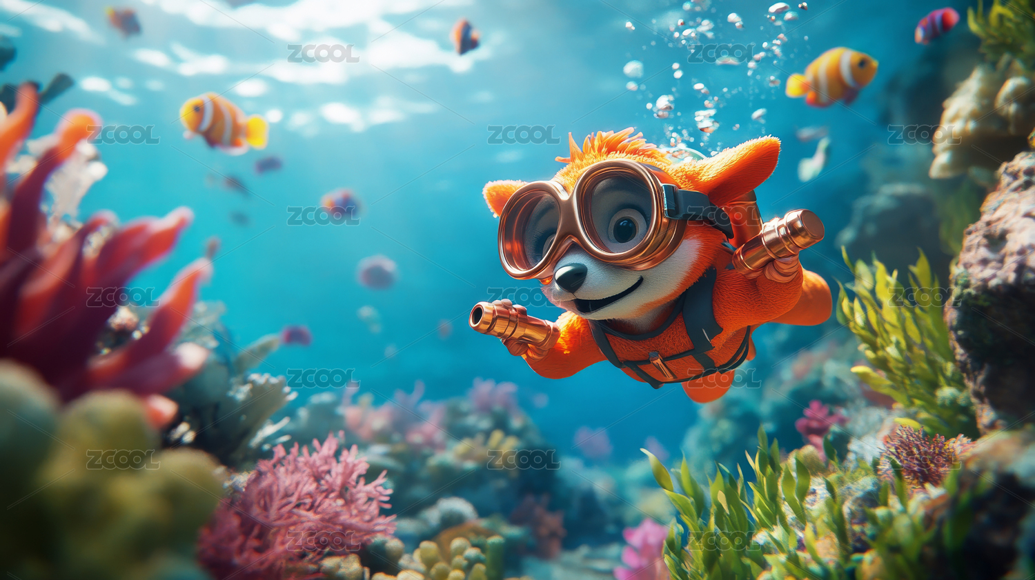 卡通鱼萌趣感海洋场景