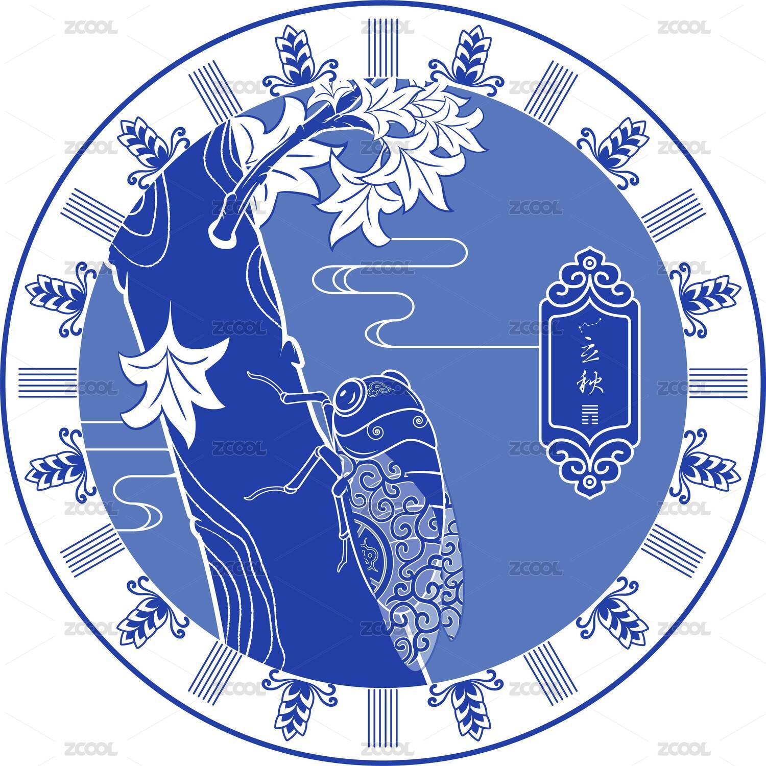 圆,传统,青花瓷,蓝色,茶,北斗,消息卦,国学,花边,蚱蜢