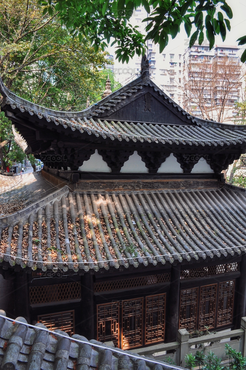 福建省福州西禅古寺的古阁楼和旁边的高楼