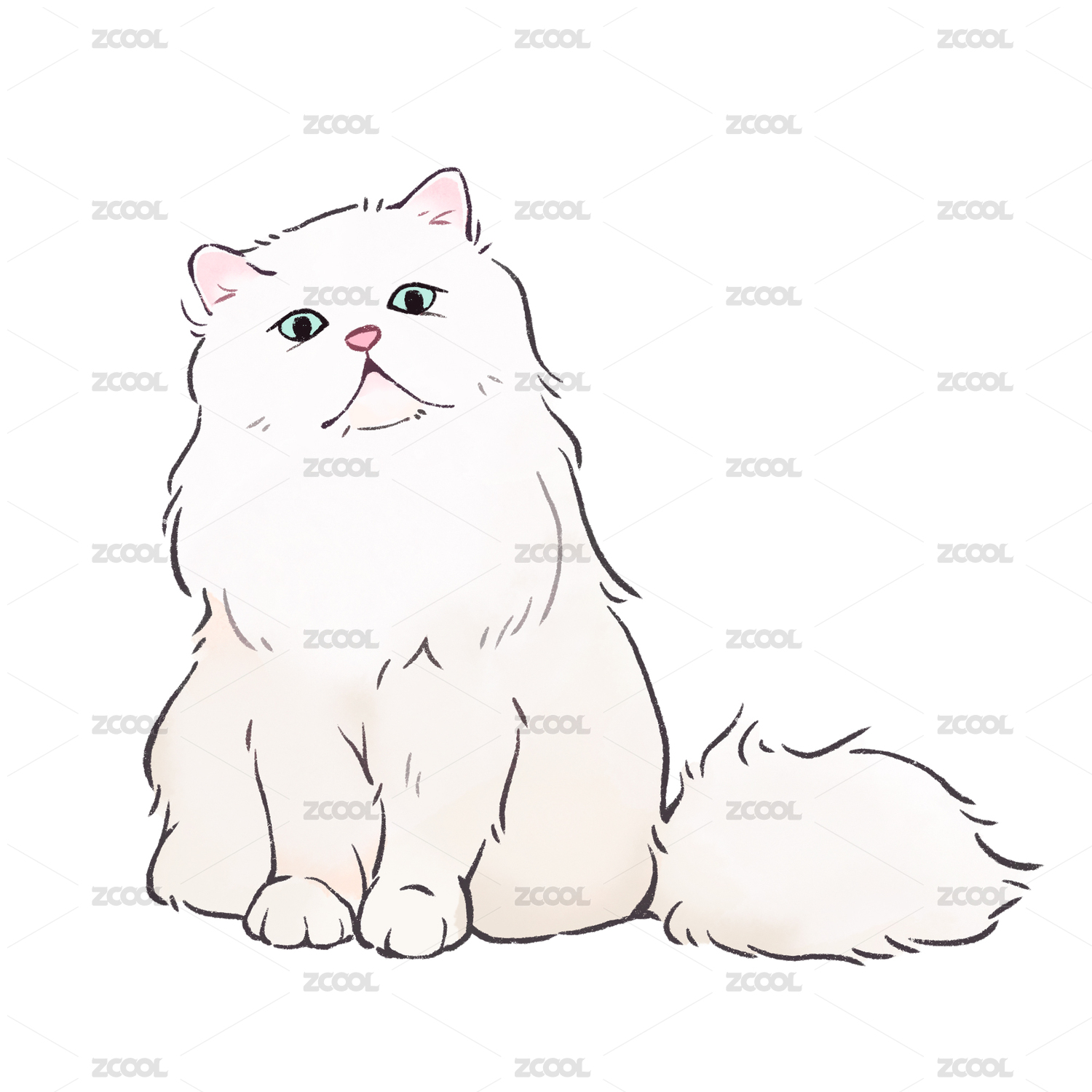 猫咪白色可爱 蓝眼睛粉鼻子布偶坐姿动物猫