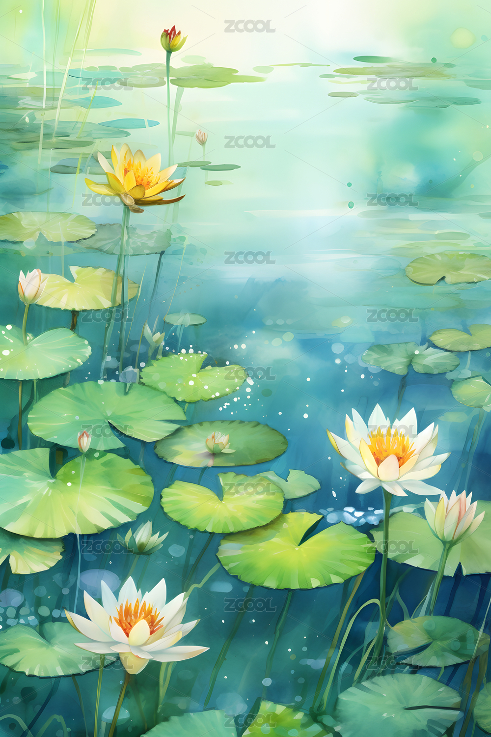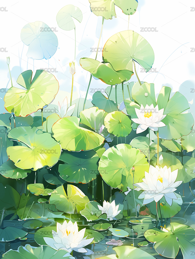 夏季,荷花,荷塘,插画,小暑,大暑,夏天,荷叶,国风,处暑