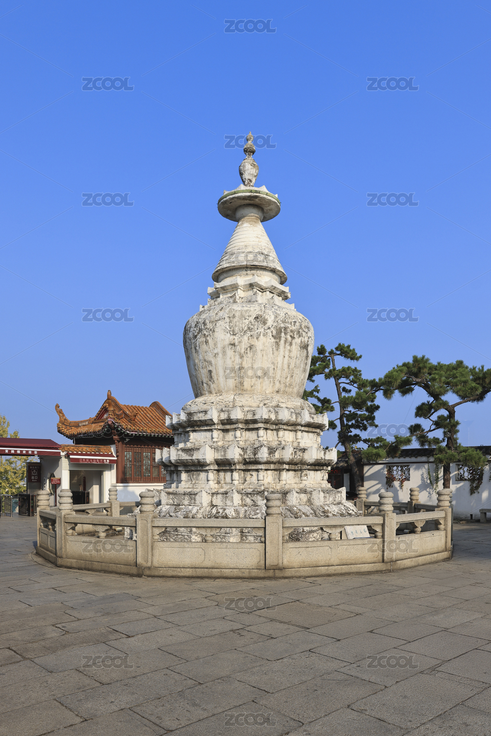中国山东省济宁市兖州兴隆文化园内蓝天下的佛塔建筑