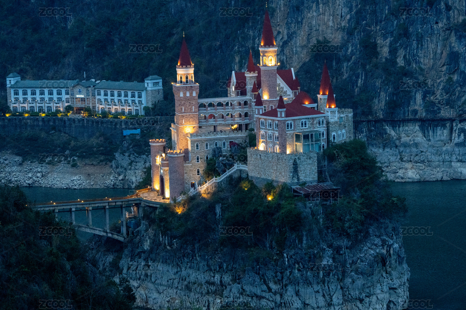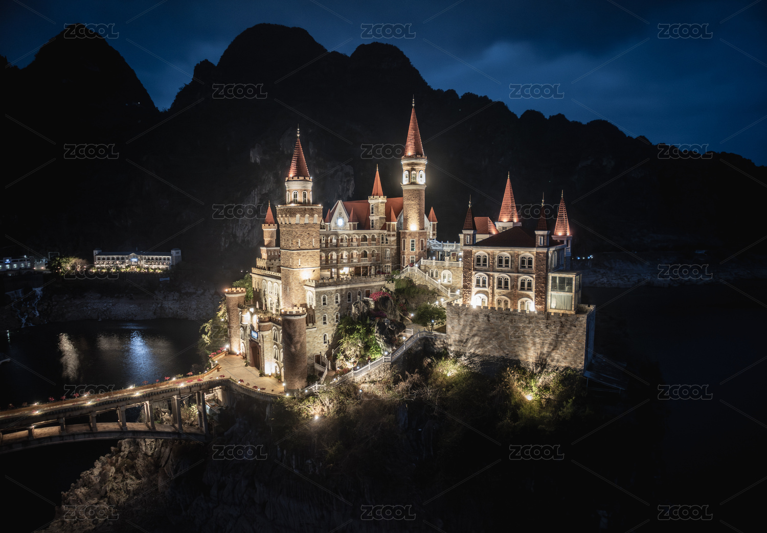 贵州黔西南兴义吉隆堡度假村航拍城堡夜景