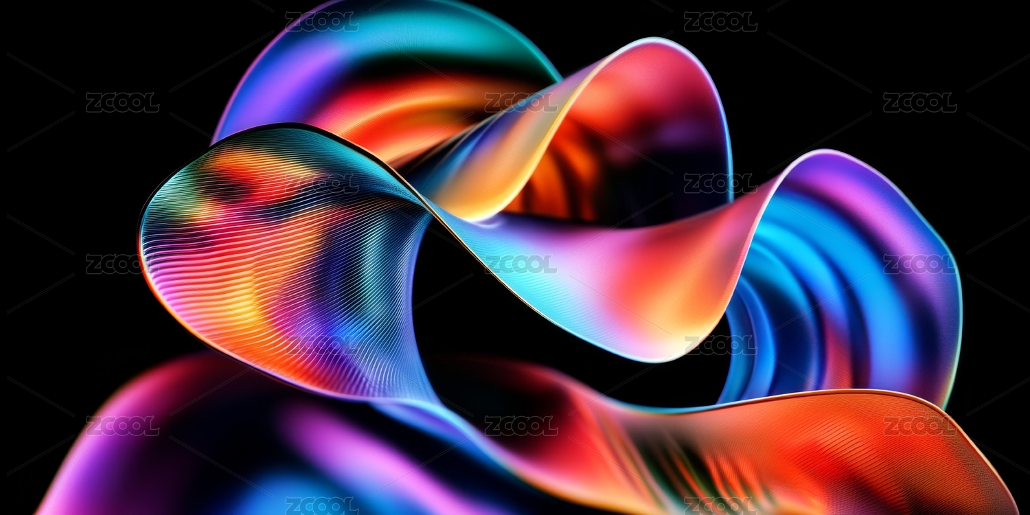 抽象的曲面与线条背景3D渲染,蓝色波浪抽