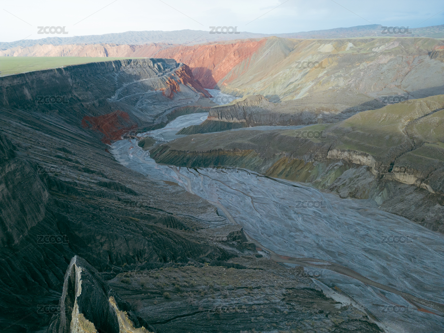 风景,山谷,山脉,悬崖绝壁,冲积平原,丹霞地貌,红色地形,天山山脉,河流,河床