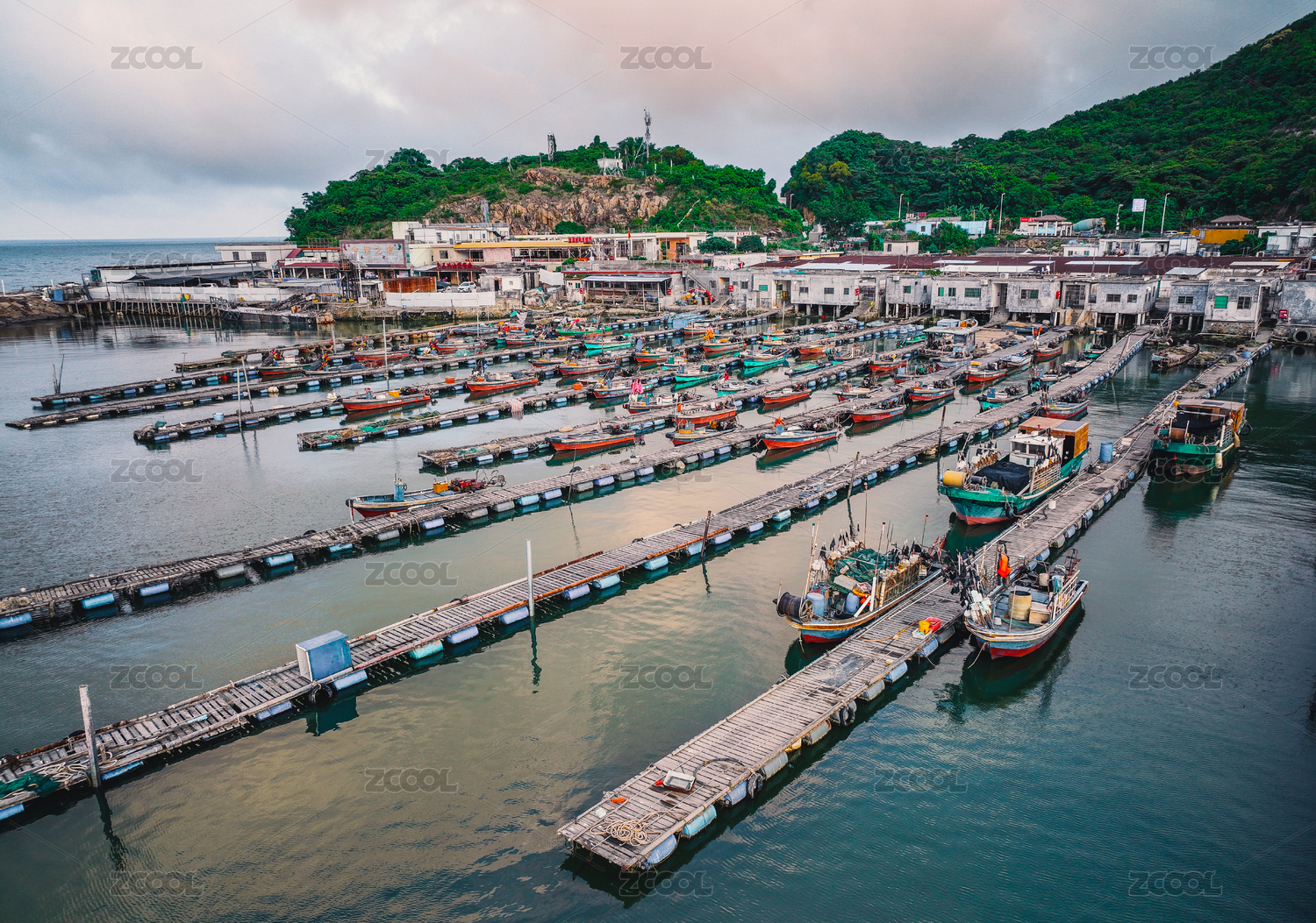 海南三亚渔村渔船码头航拍