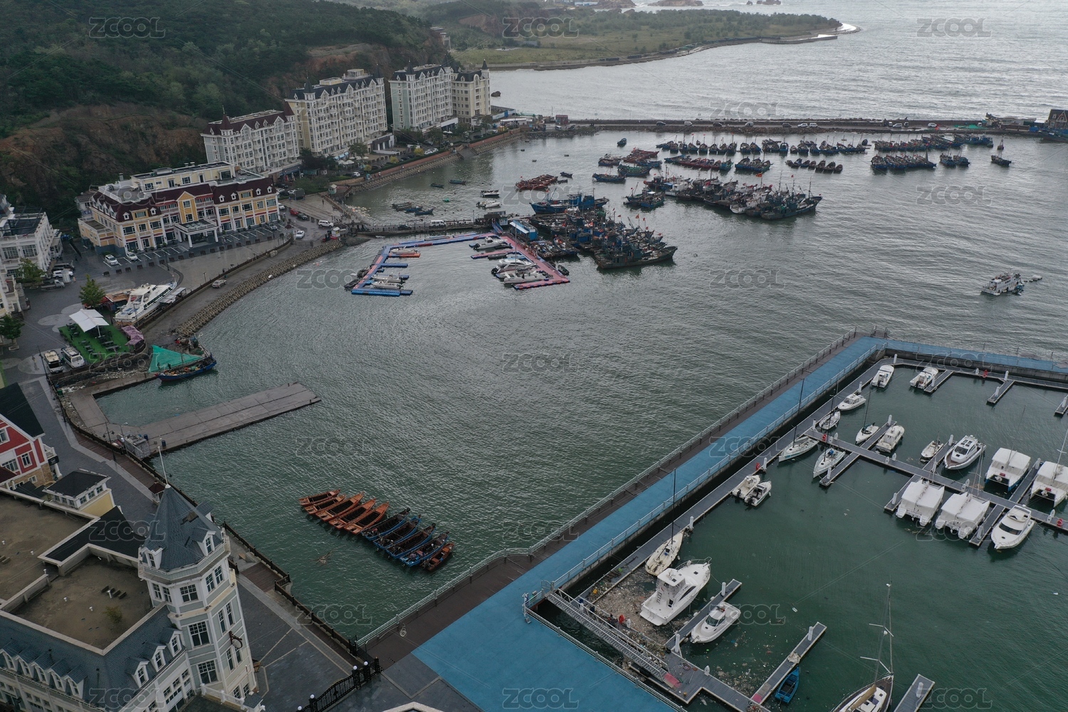 大连老虎滩渔人码头航拍