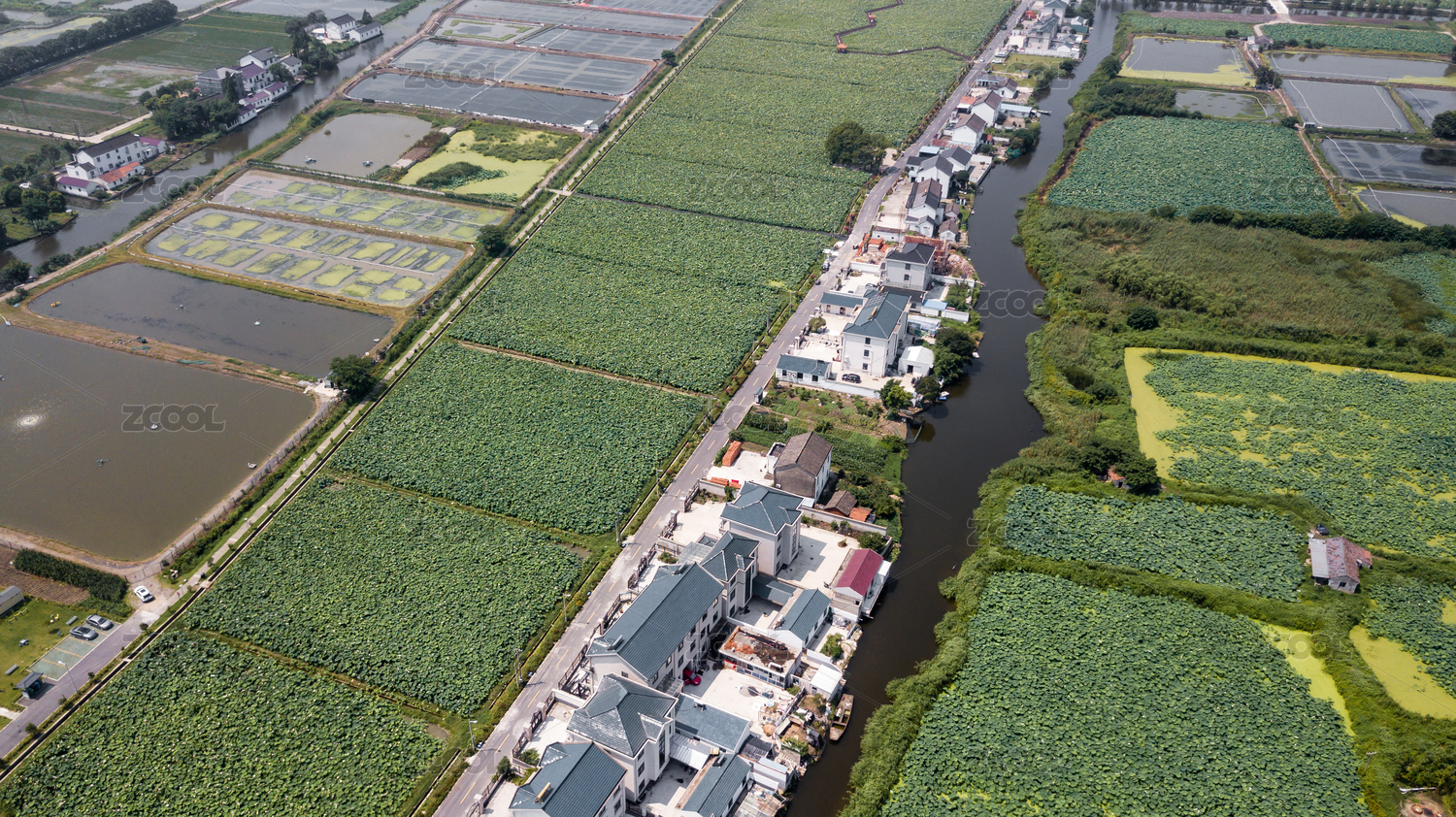 航拍中国江苏苏州太仓双凤百亩荷塘