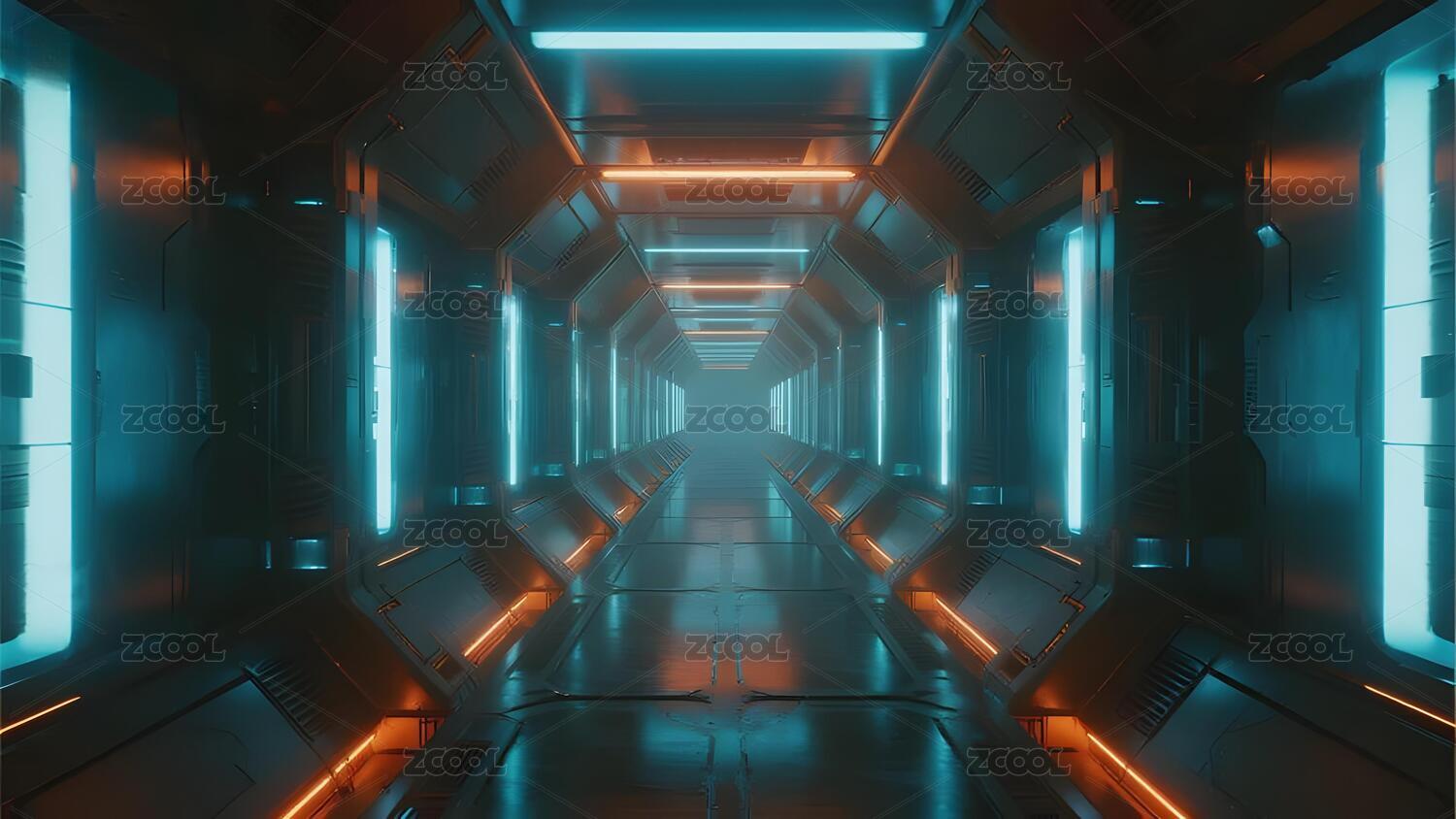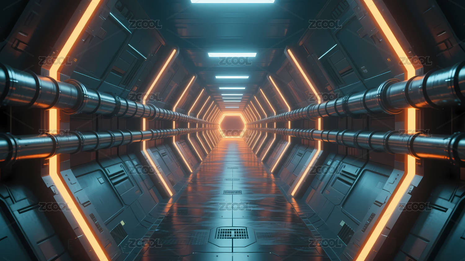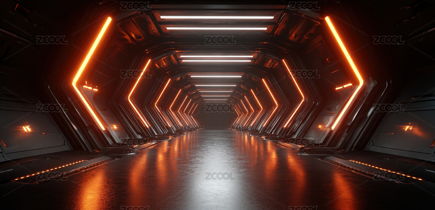 科技,霓虹灯,黑暗,走廊,未来,科幻,场景,光线,效果,灯光