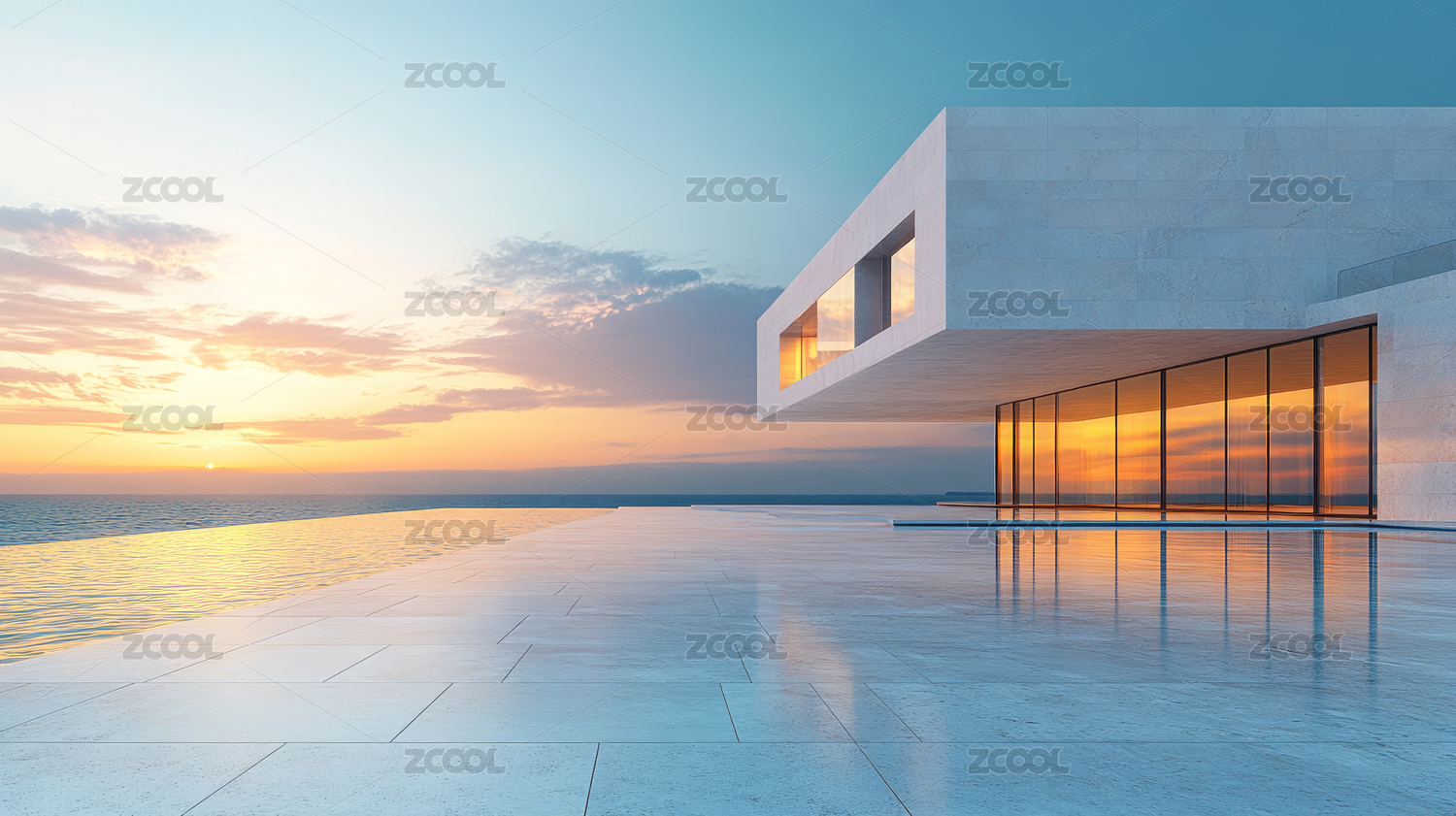 反射,优雅,建筑,现代,简约,玻璃,窗户,日落,几何,线条