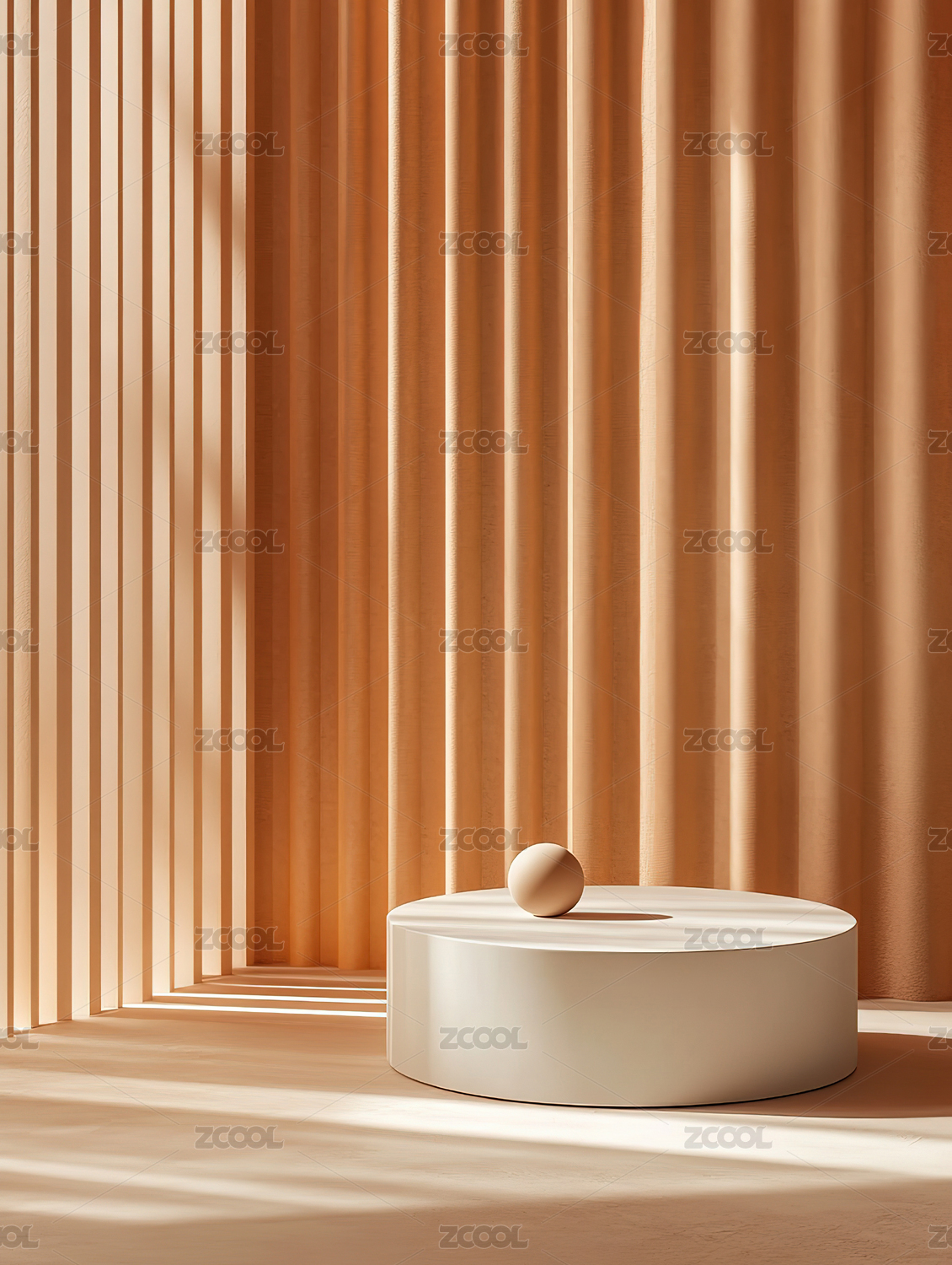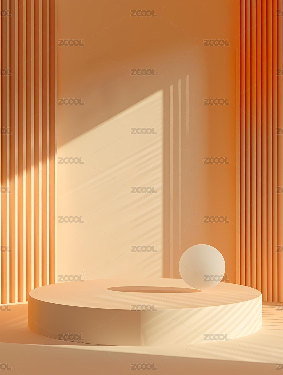 橙色空间中的白色圆台与小球
