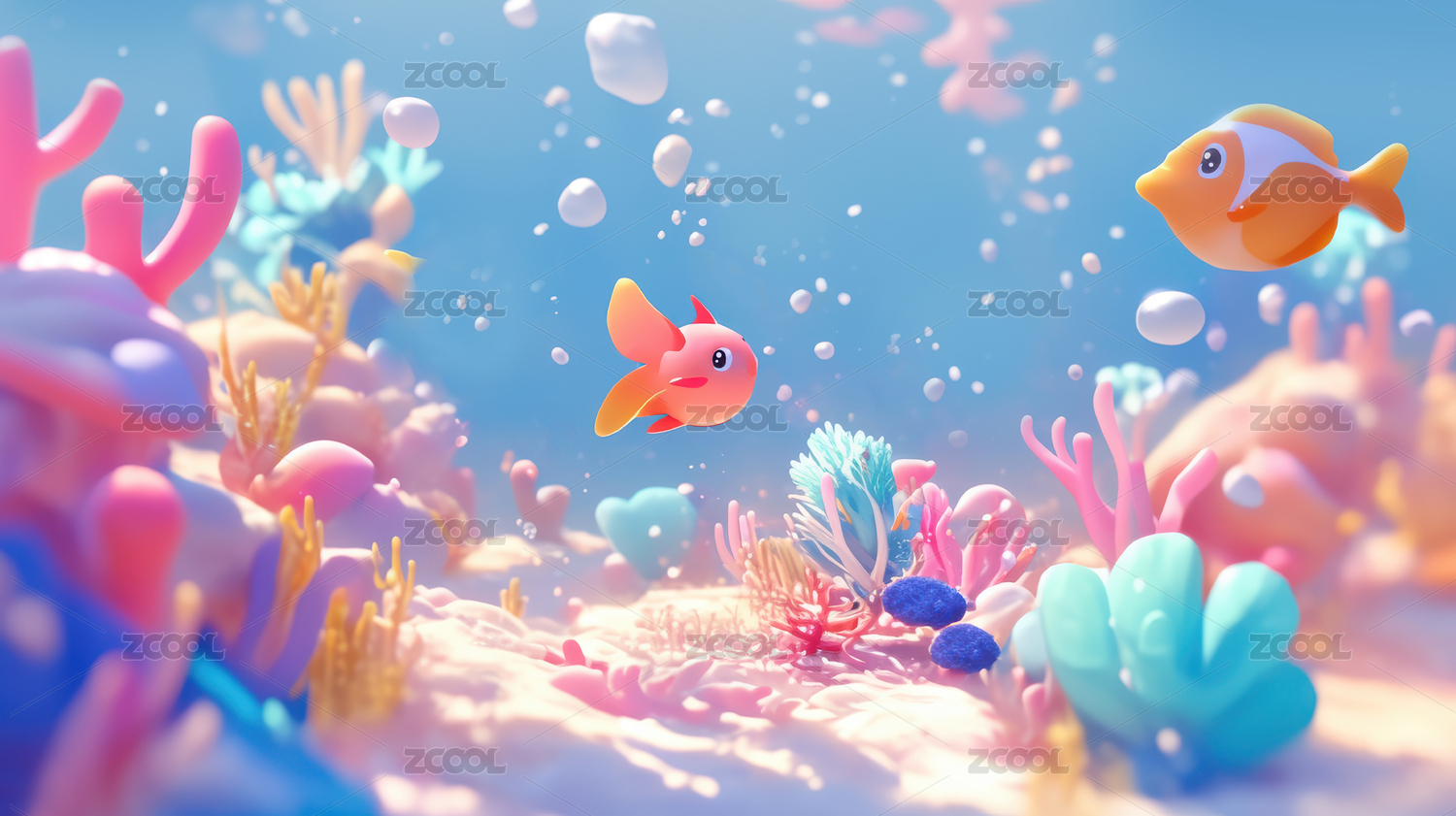 海底世界3D海洋生物珊瑚梦幻唯美自然背景