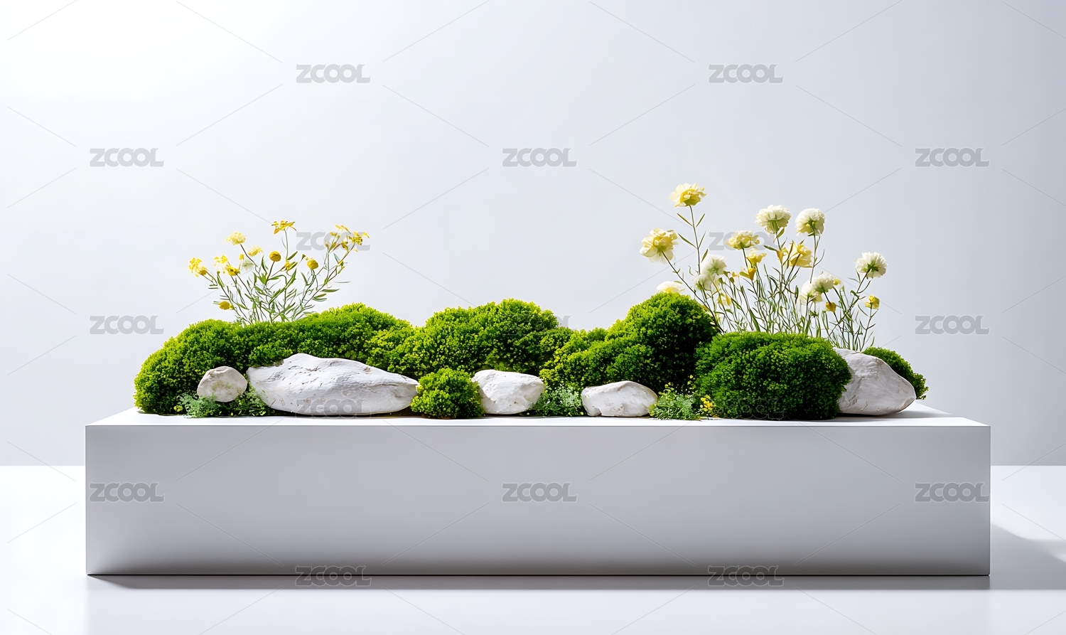 白色,简洁,植物,展台,展示台,平台,绿色,展示,电商,圆台