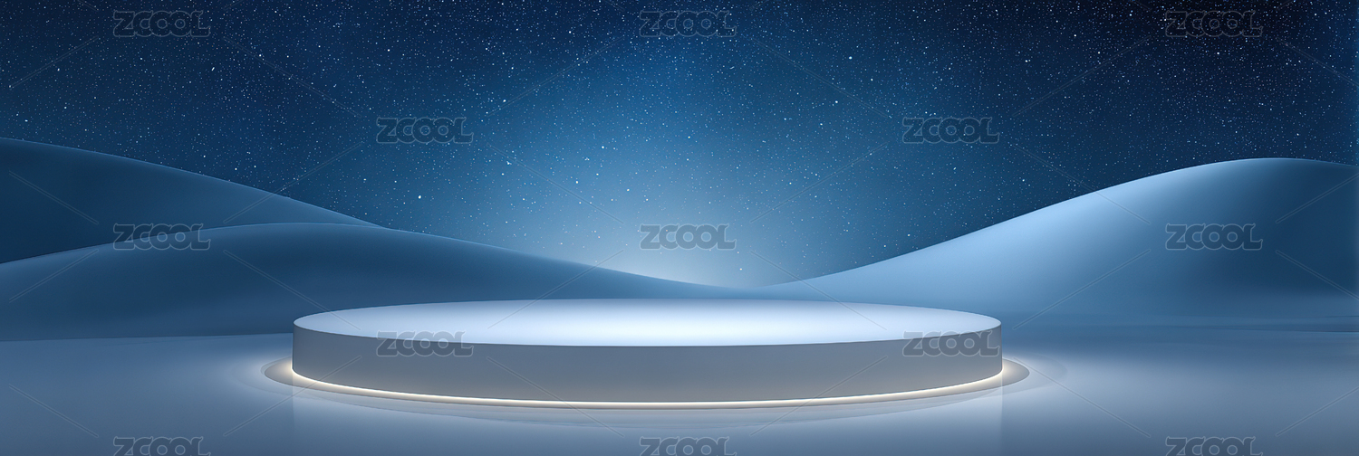 简约蓝色光滑流畅背景玻璃圆形产品展示台