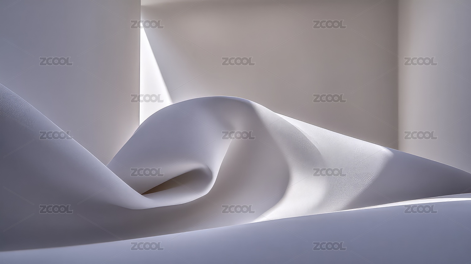 纯白色抽象褶皱和光影的视觉艺术