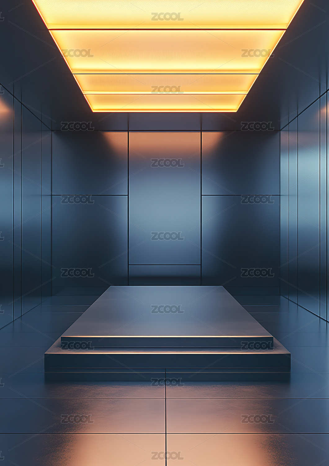 黑暗空间内几道亮线装饰墙面地面