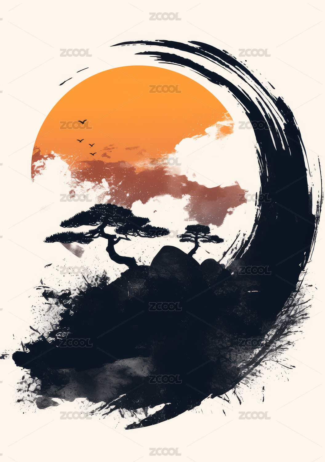 插画,高山,剪影,绘画插图,自然,地形,太阳,红色,留白,分层图像