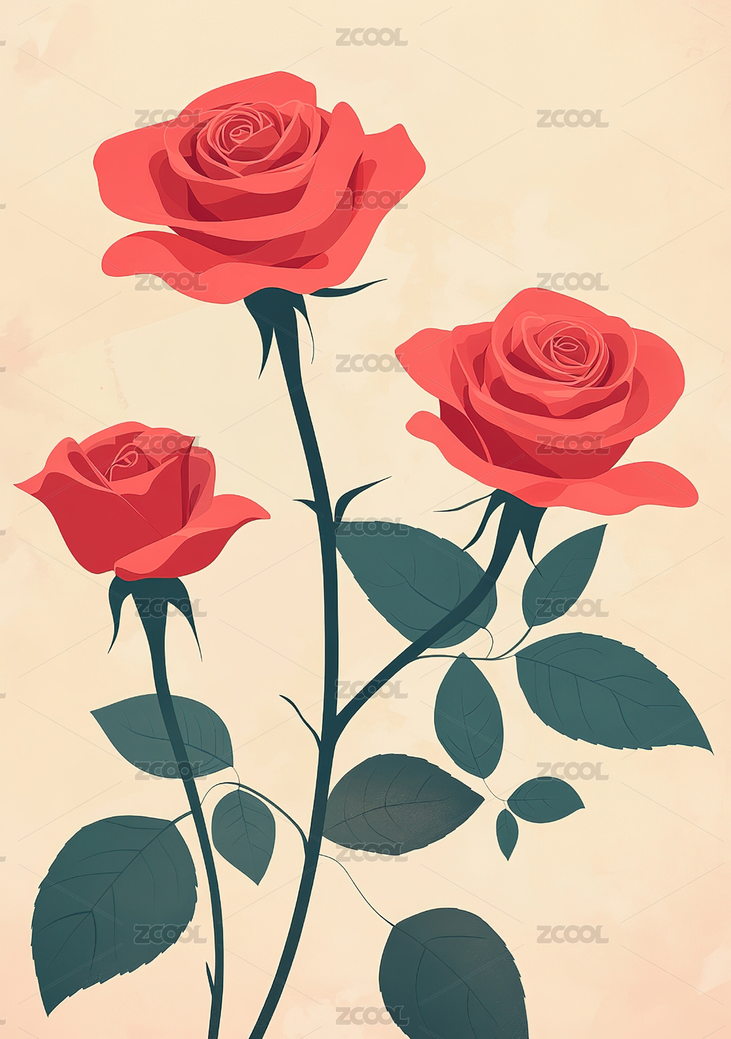 手绘卡通玫瑰花插画