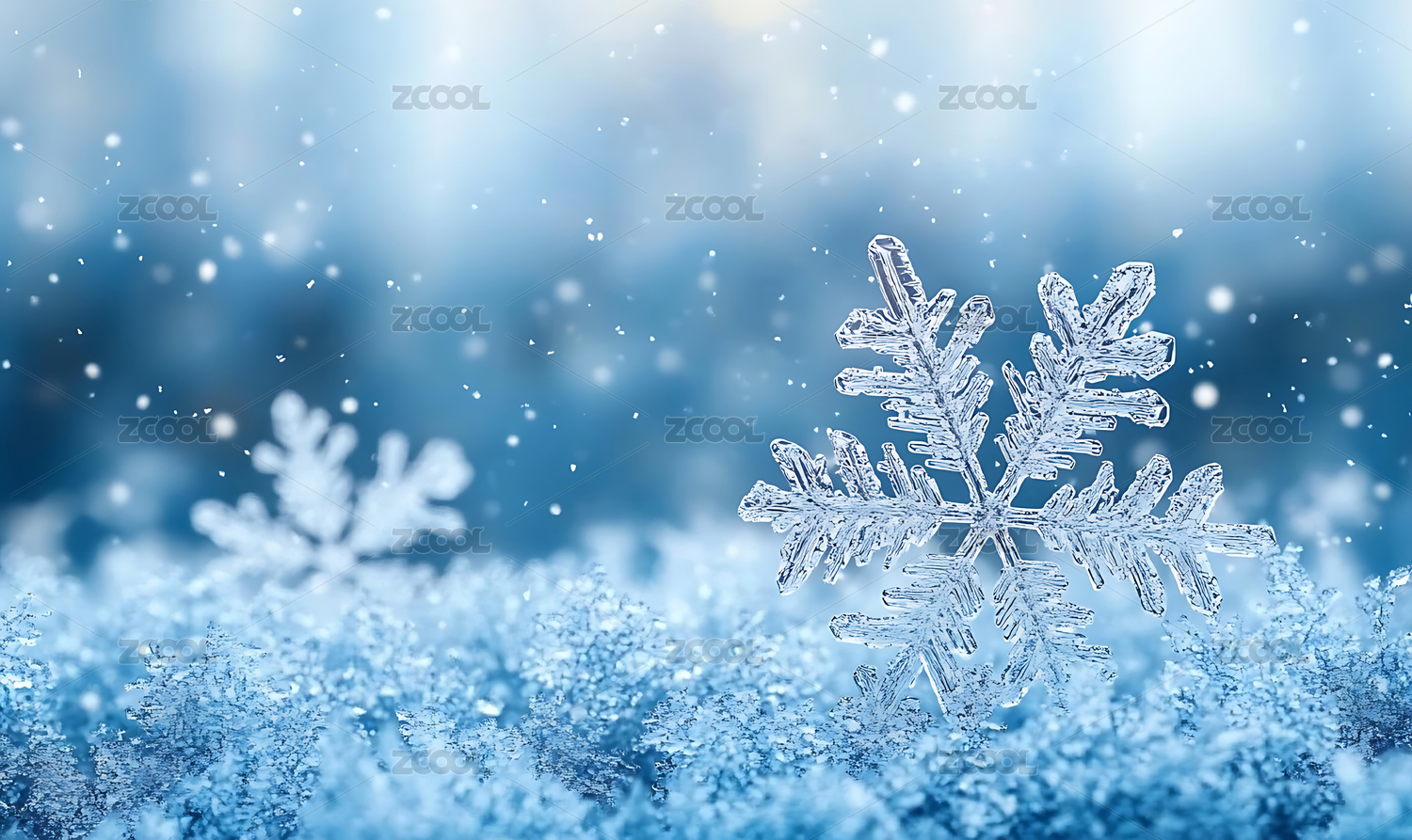 冬天冰雪主题雪景雪花特写蓝色背景图
