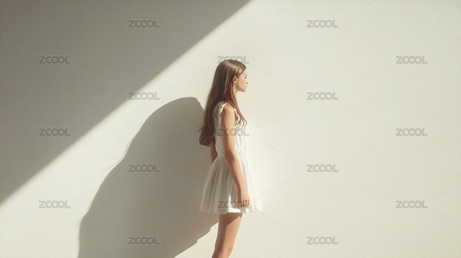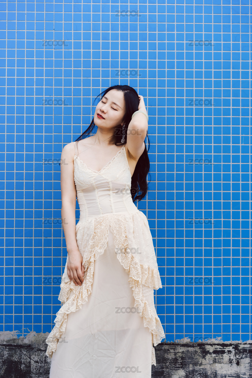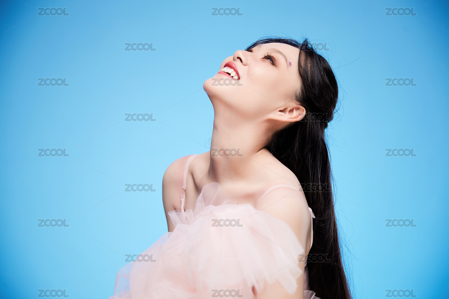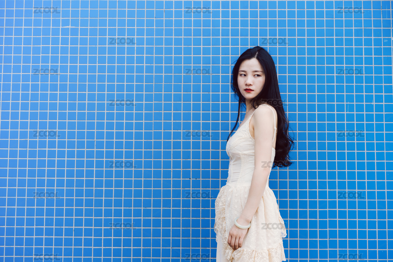 美女,少女,女孩,模特,女郎,蓝色,纯色,纯洁,纯净,背景