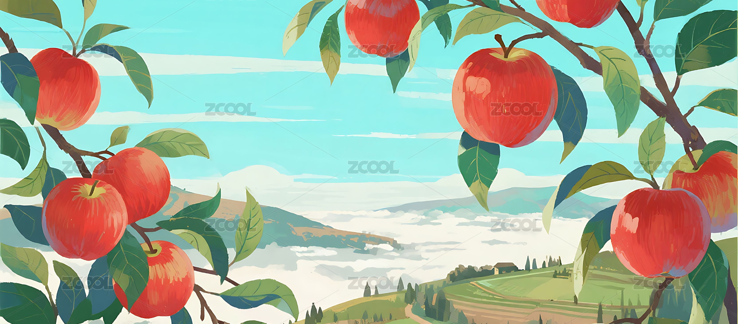 AIGCFG,苹果,包装,自然,中国文化,无人,国风,水果,国潮风,插画