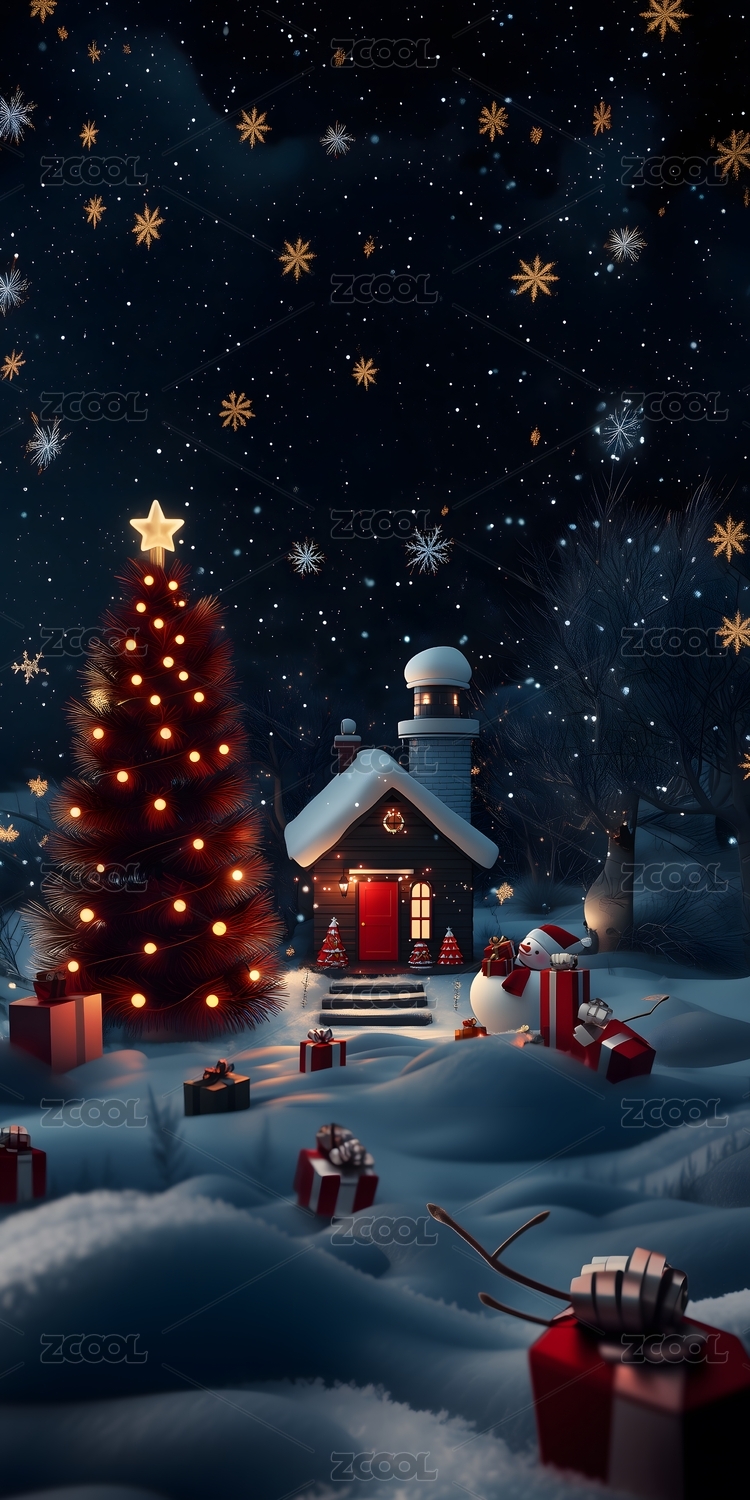 AIGCTP2024,背景,节日,圣诞树,冬季,海报,画框,水晶雪,礼盒,星空
