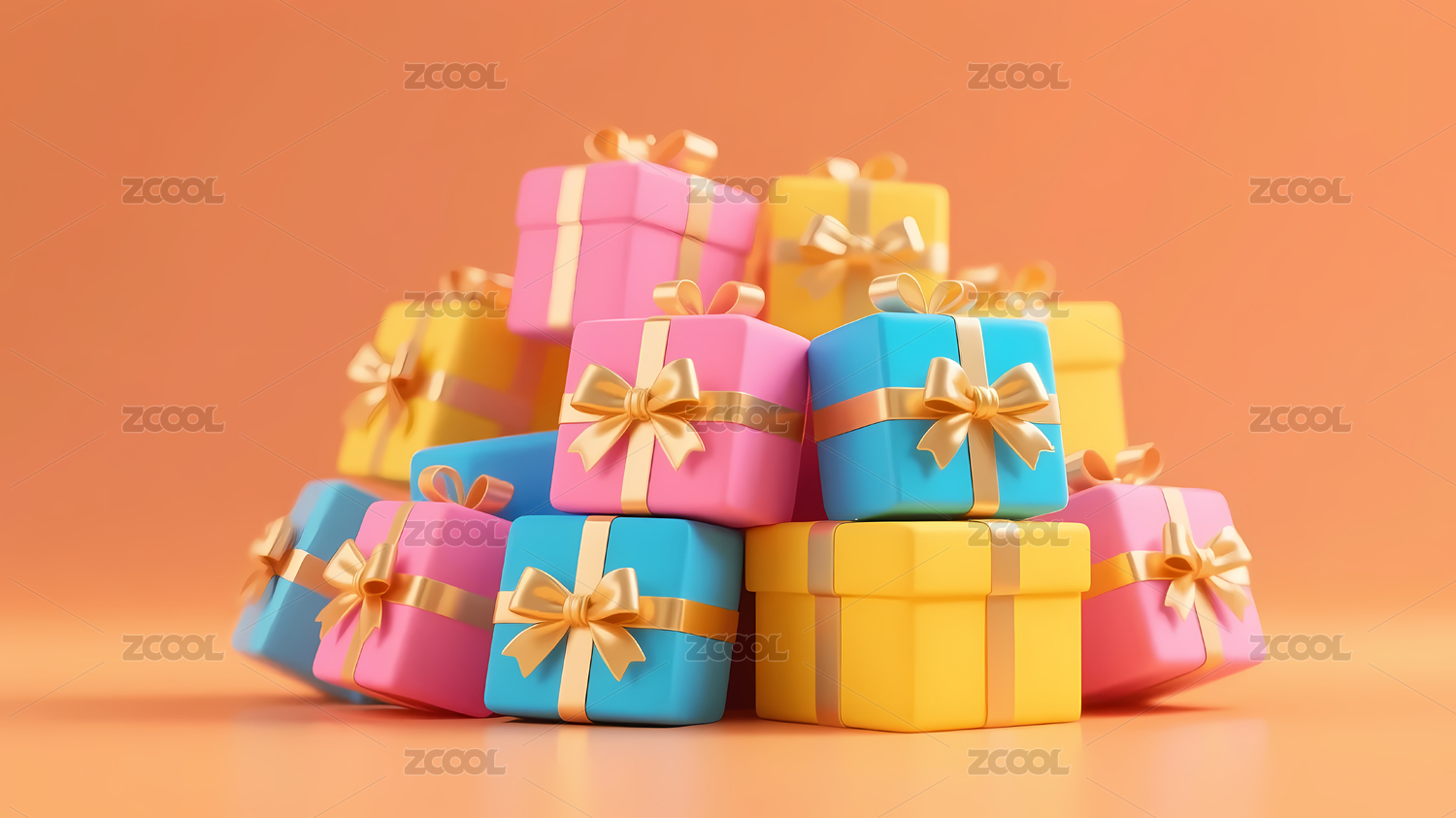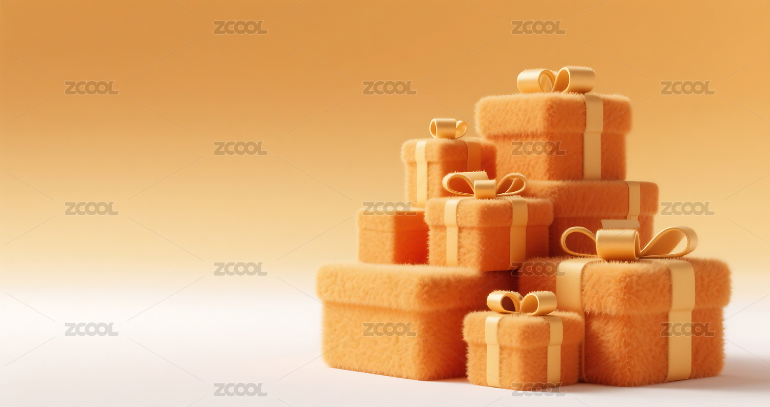 3D羊毛毡毛绒绒质感橙色礼盒背景