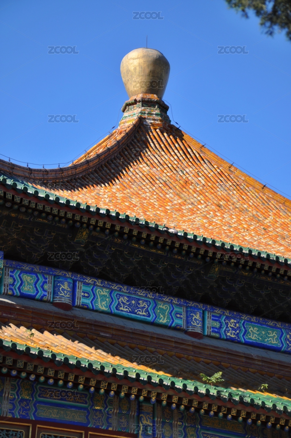 蓝天下的天坛皇穹宇宫殿脊兽特写