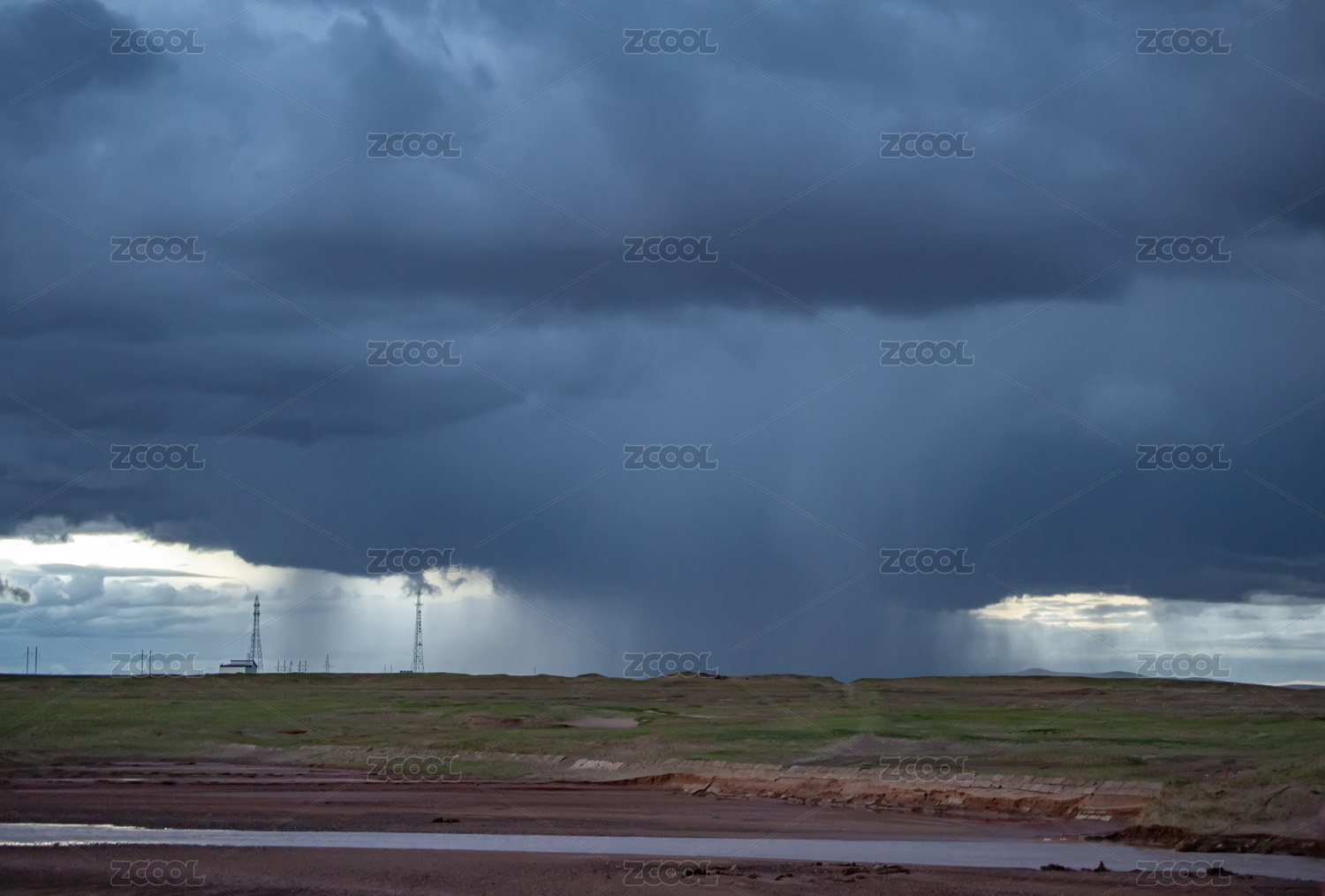 中国新疆伊犁远处草原倾盆大雨草原气候