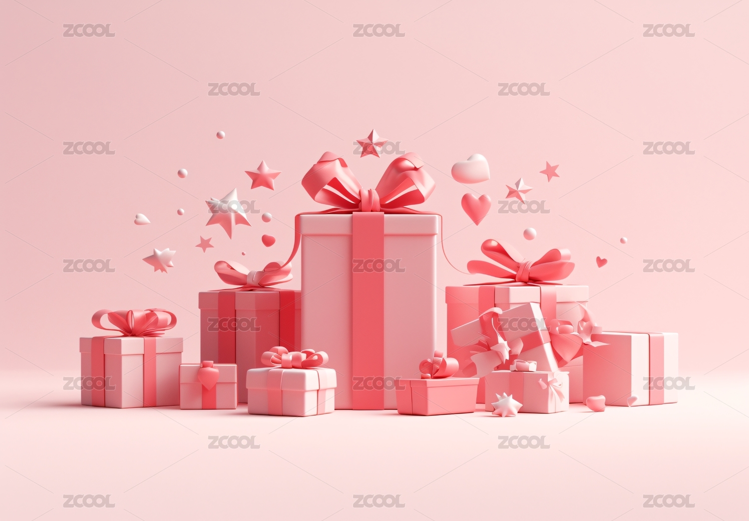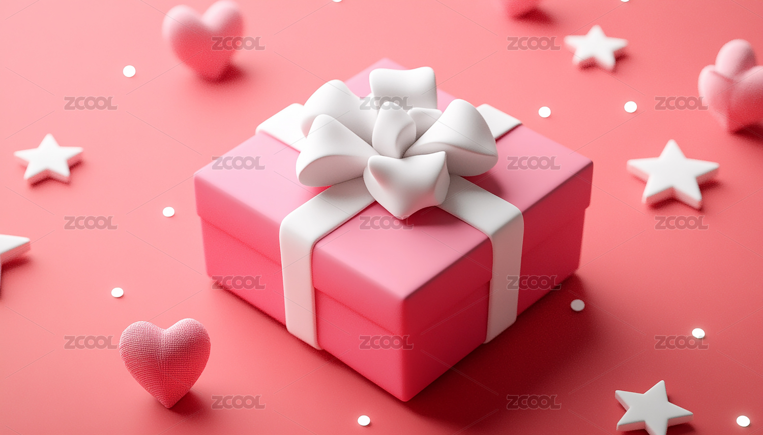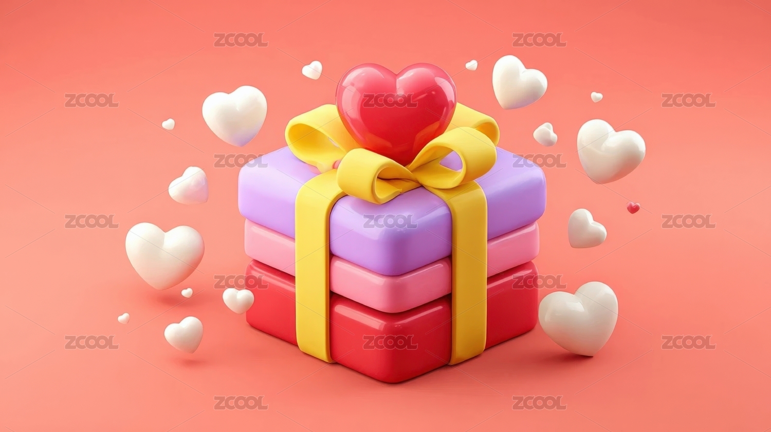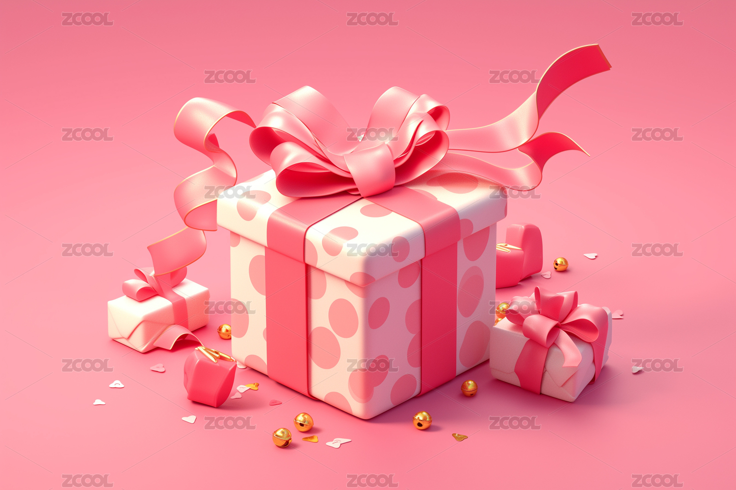 情人节儿童节七夕礼物礼品盒3D卡通插画
