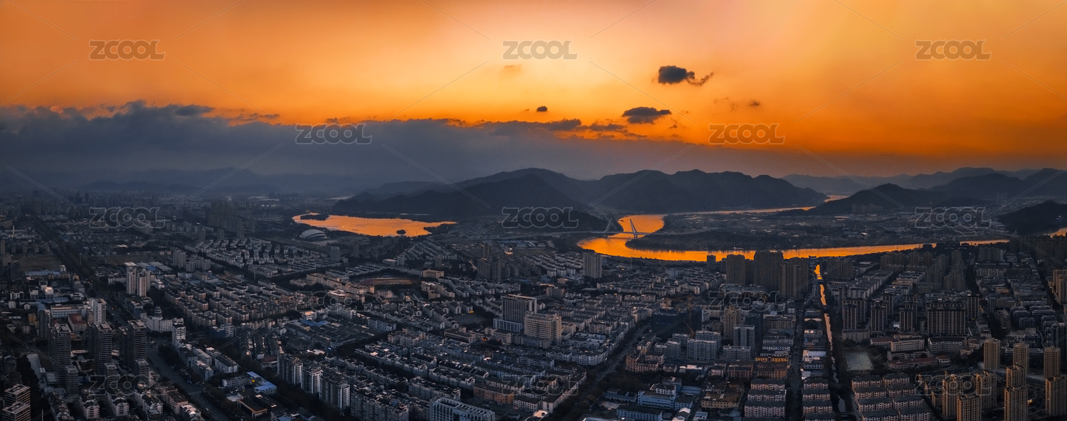 福建宁德霞浦县城日落晚霞城市建筑山水风光
