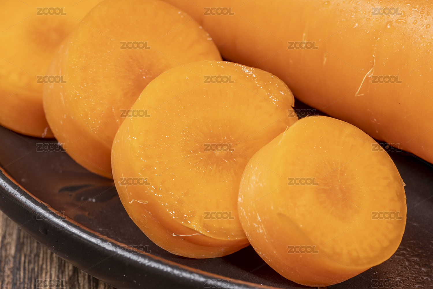 桌面上的盘子里的美味可口的新鲜胡萝卜